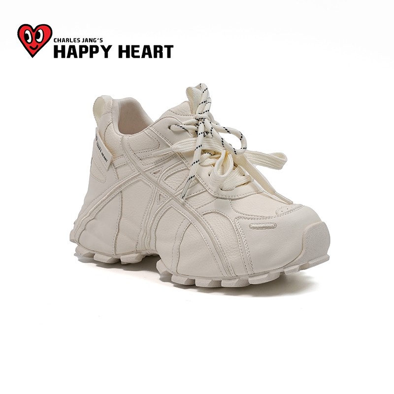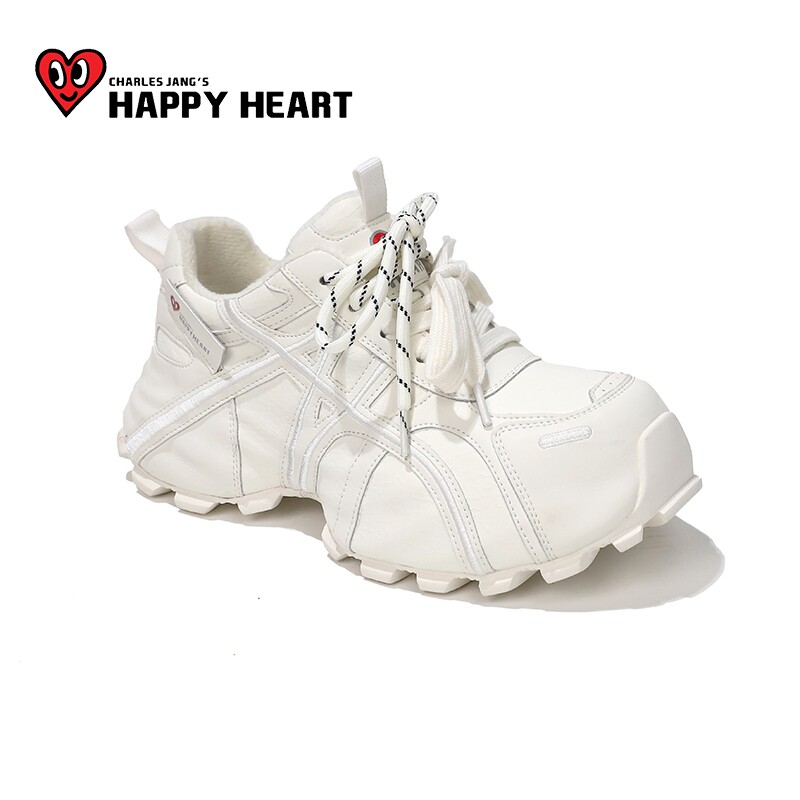 查尔斯桃心厚底老爹鞋女2025冬季新款运动白色增高小个子加绒女鞋