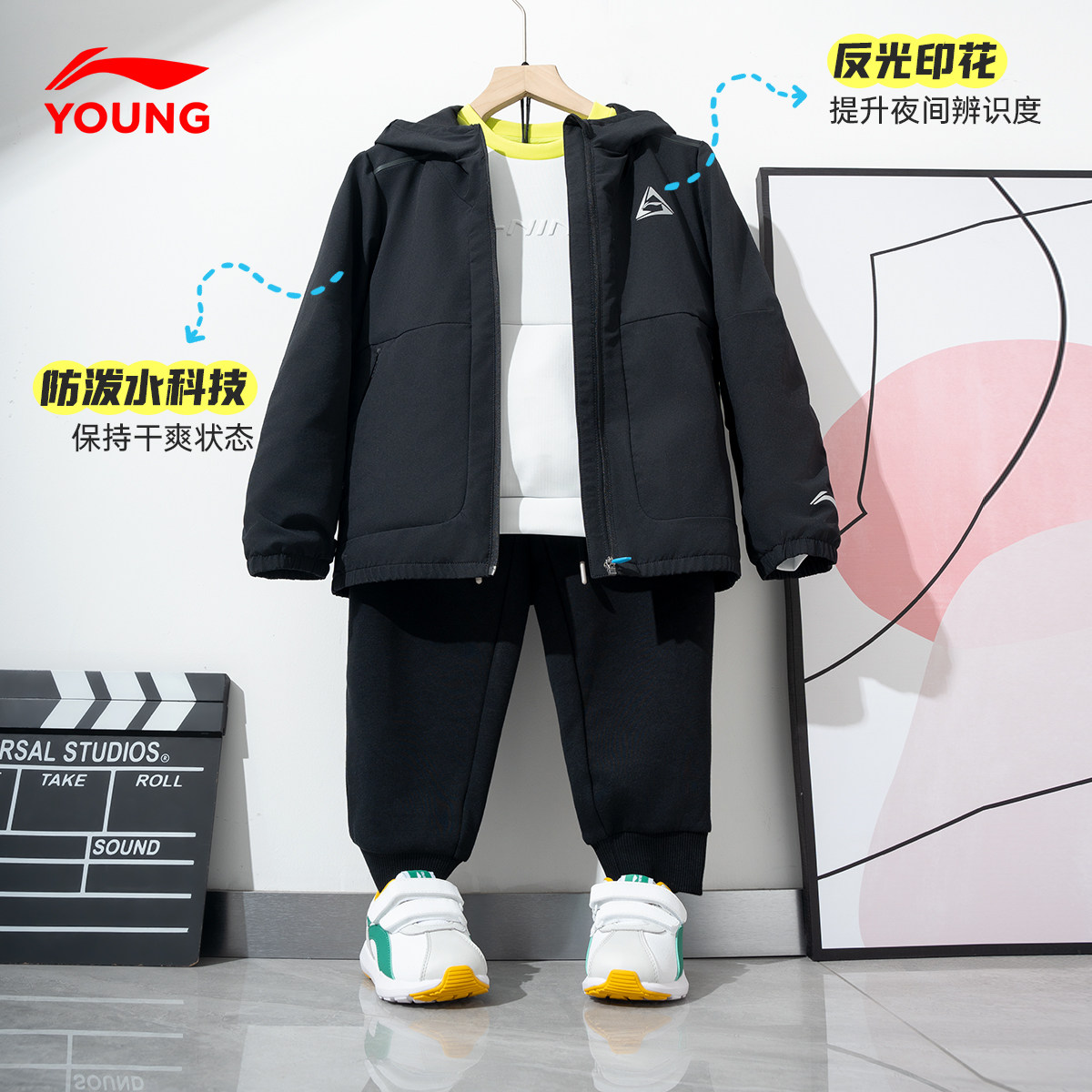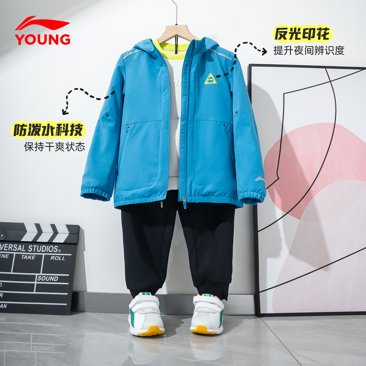 李宁儿童冲锋上衣外套男童中大童春秋新款青少年童装运动风衣女童