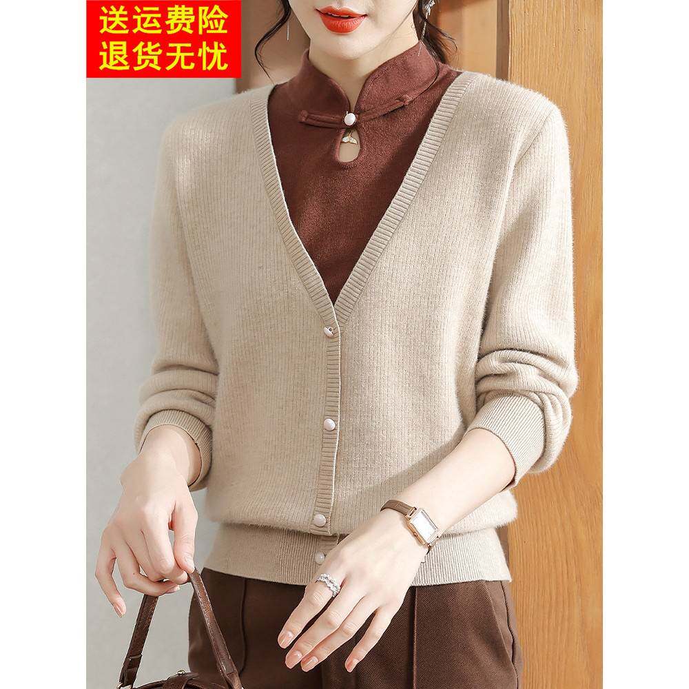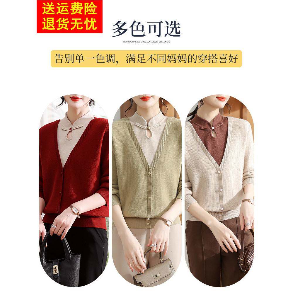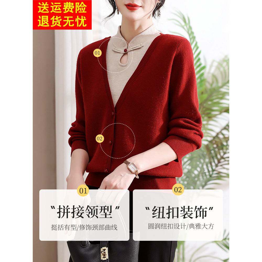 妈妈冬装2025新款红色旗袍领打底衫中老年女装加厚上衣本命年毛衣