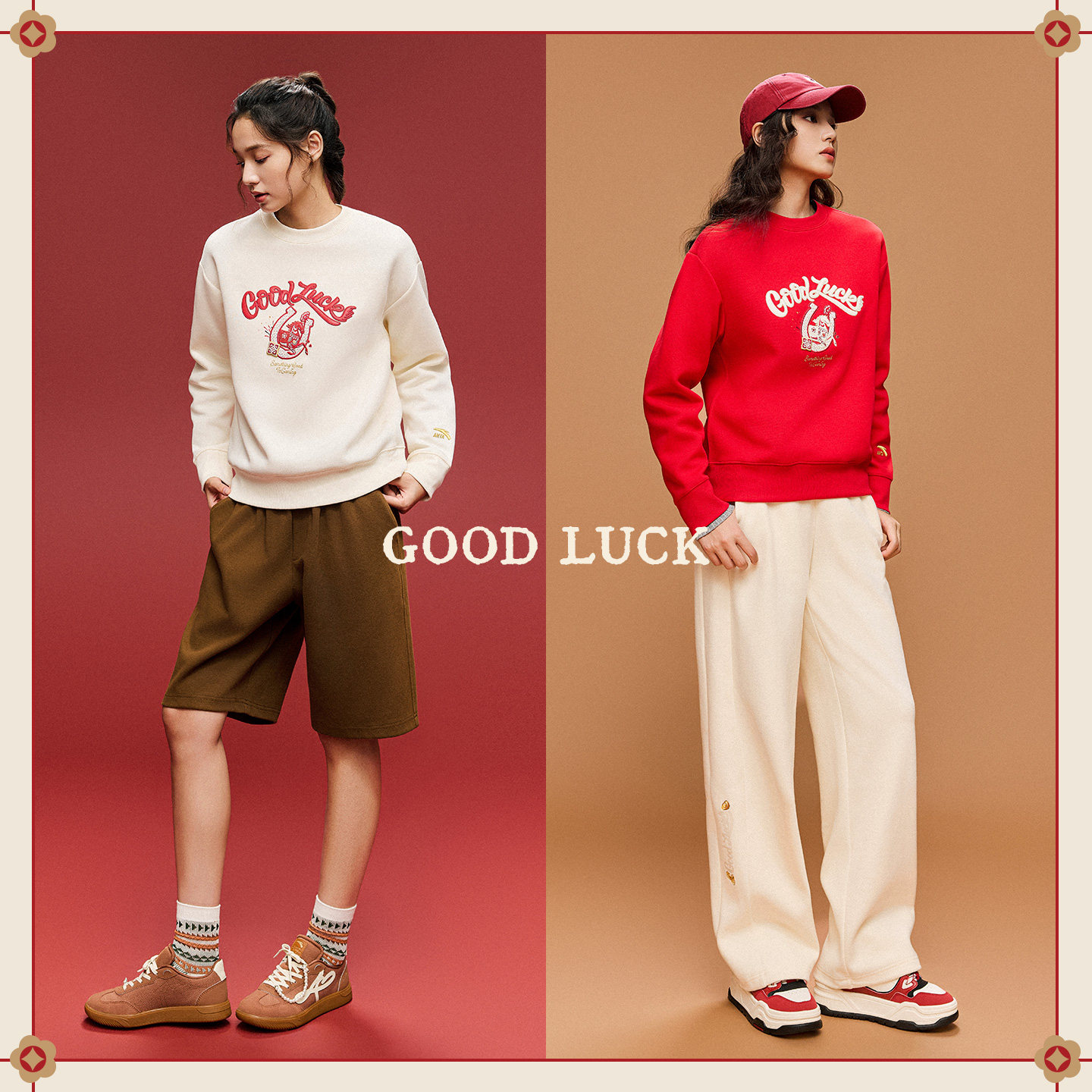 安踏好事发生丨马年新年鸿运卫衣女士圆领红色休闲上衣162618705S
