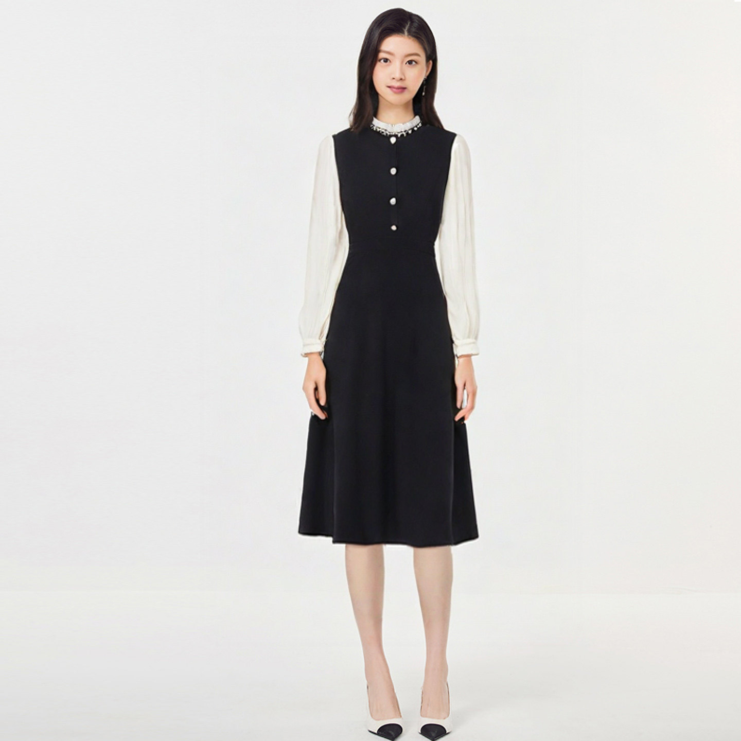 珂莱商场同款2025秋冬季新款黑色显瘦长袖中长款毛针织连衣裙子女