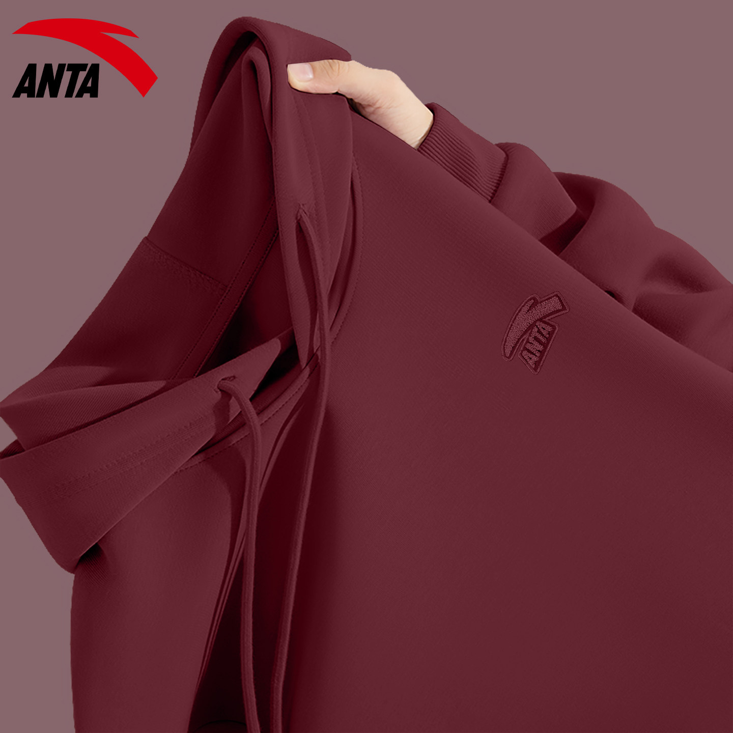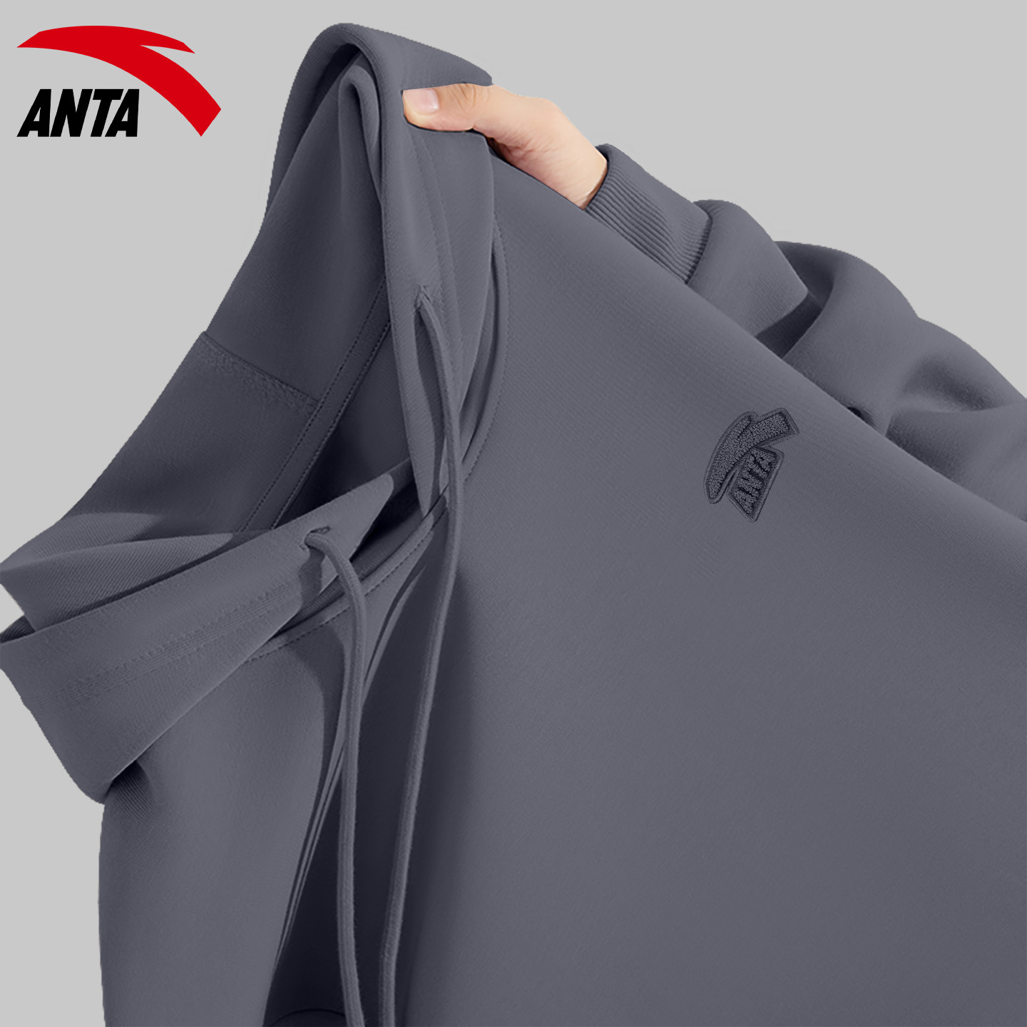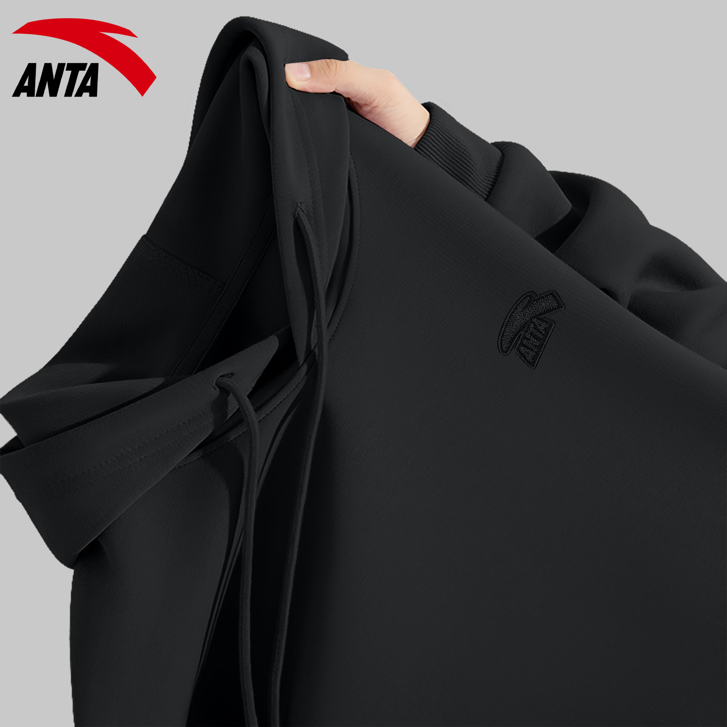 安踏卫衣男青少年宽松连帽套头运动衫秋冬加绒百搭休闲纯色内搭女