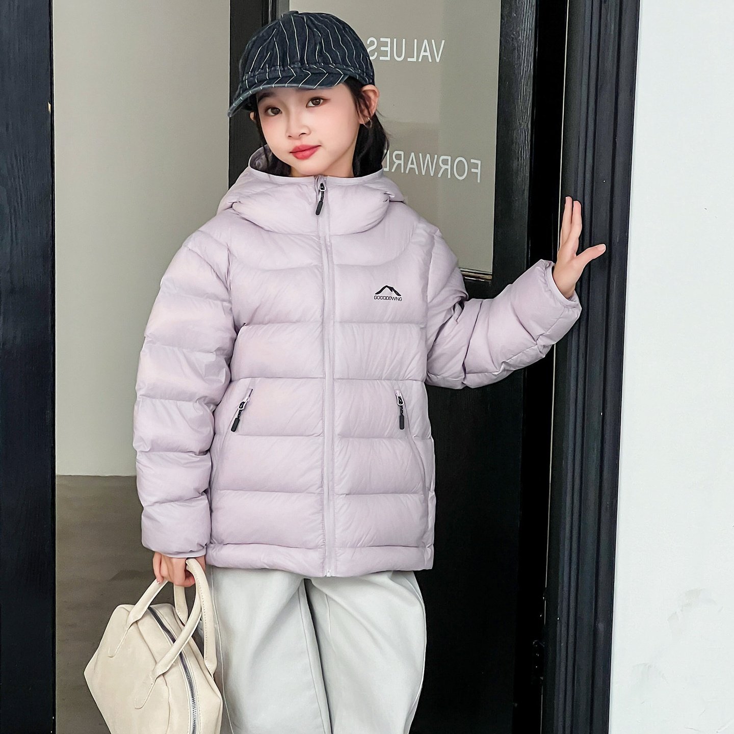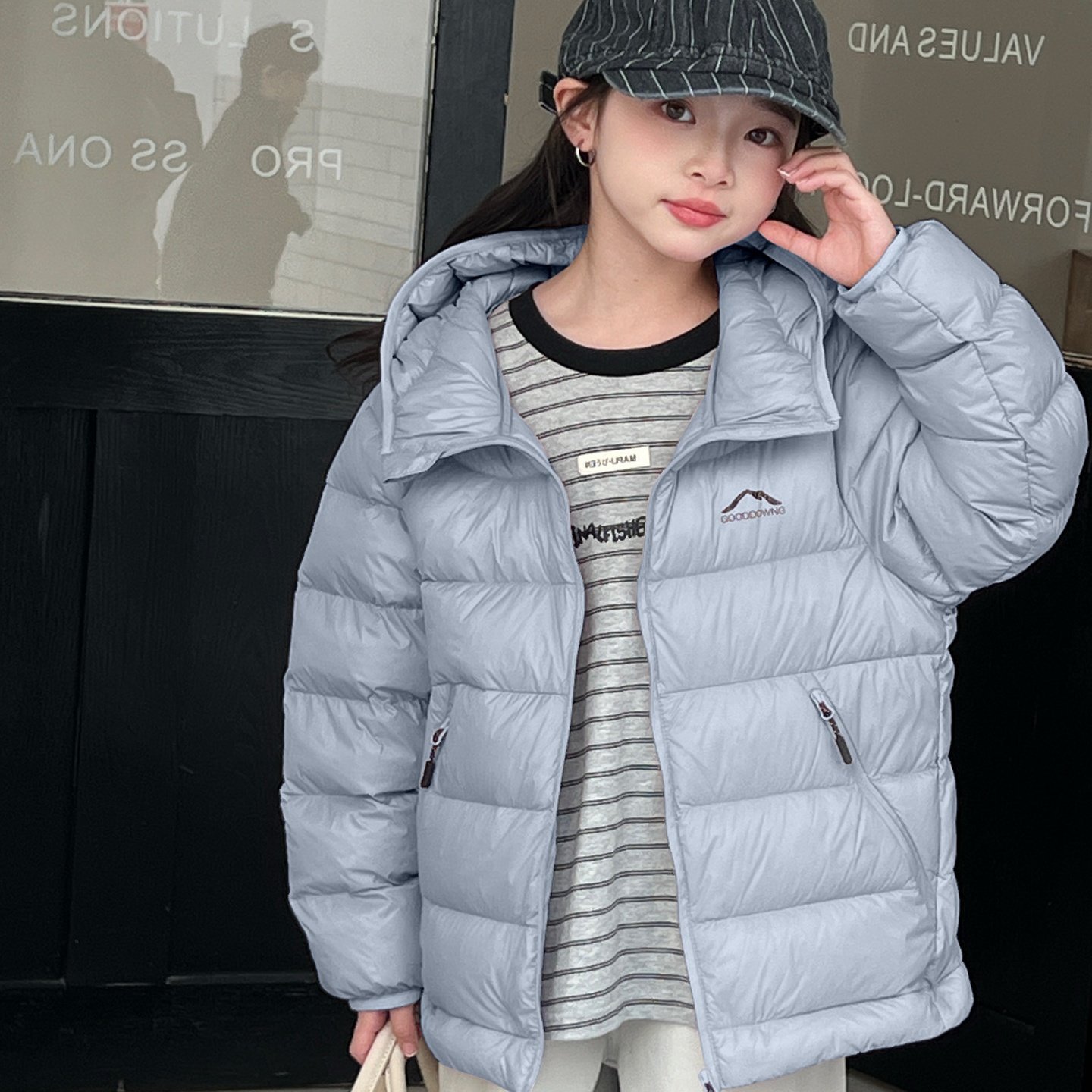 女童黑色羽绒外套轻便薄款蓝色初中生青少年女孩羽绒服2025新款