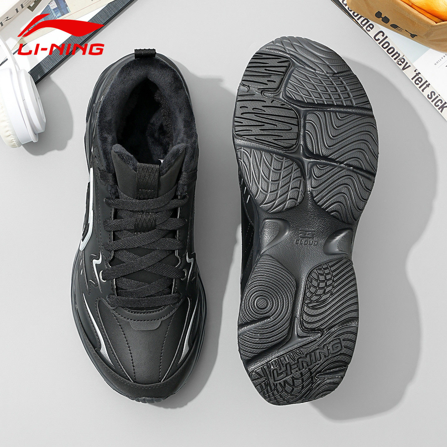 李宁男鞋冬季加绒保暖2026新款加厚耐磨防滑青少年运动跑步鞋男款