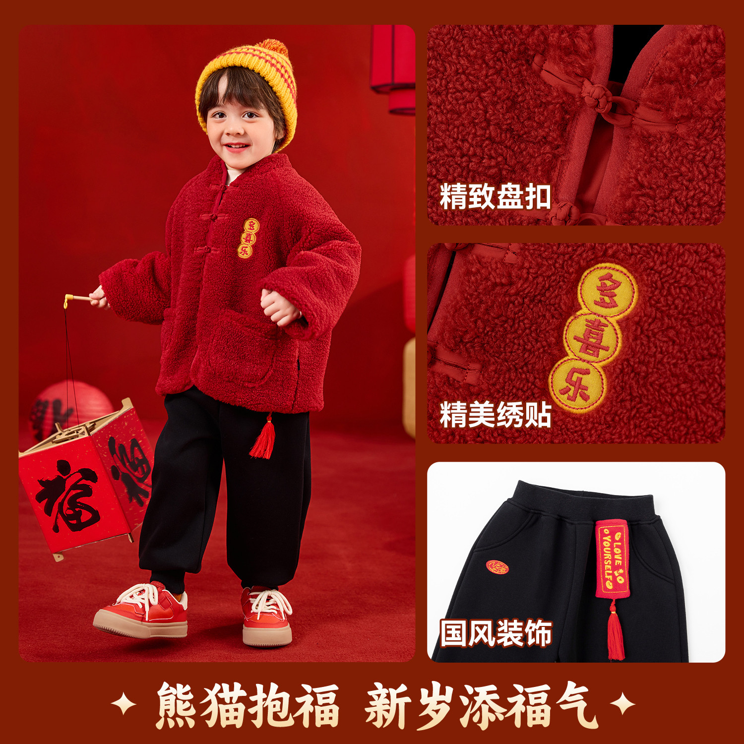 嘟嘟家儿童拜年服套装男童女童冬季新中式外套裤子宝宝新年衣服潮