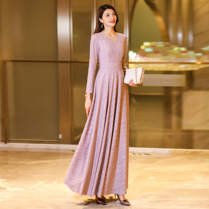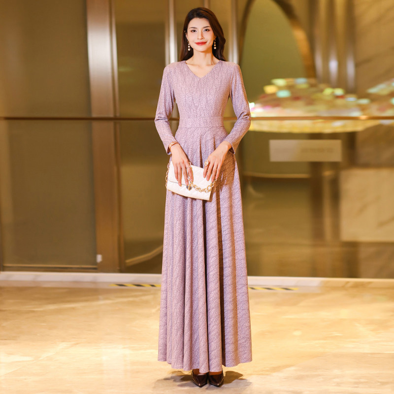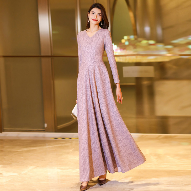 气质长袖连衣裙女2025秋季新款高端精致长裙针织蕾丝裙子粉色显白