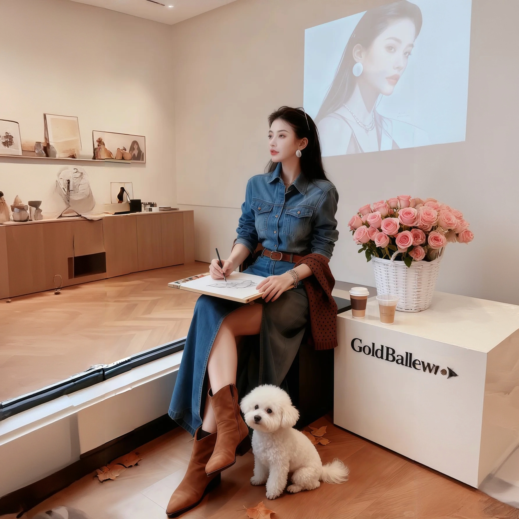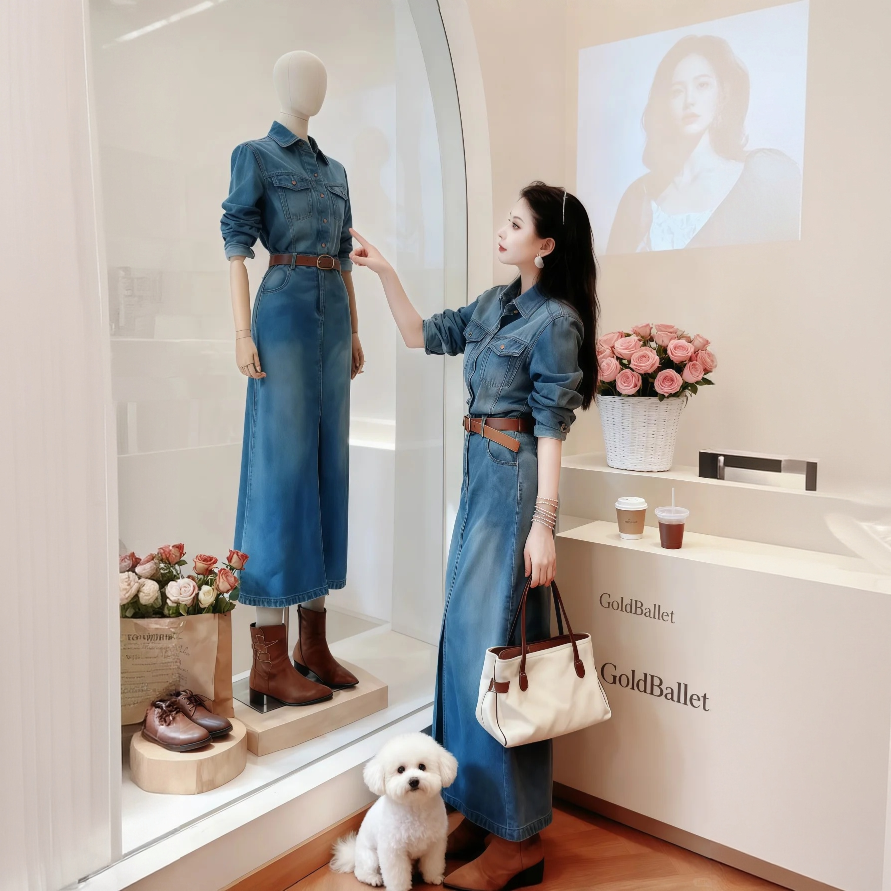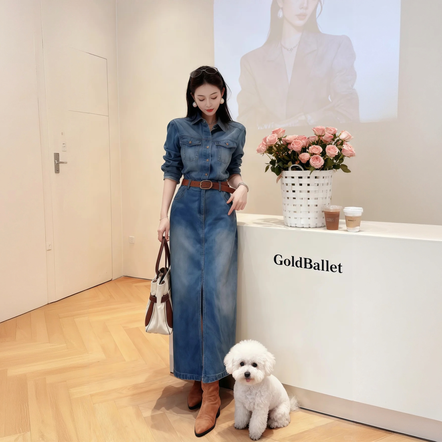 2025春秋季新款复古水洗牛仔连衣裙女设计感小众收腰显瘦长袖长裙