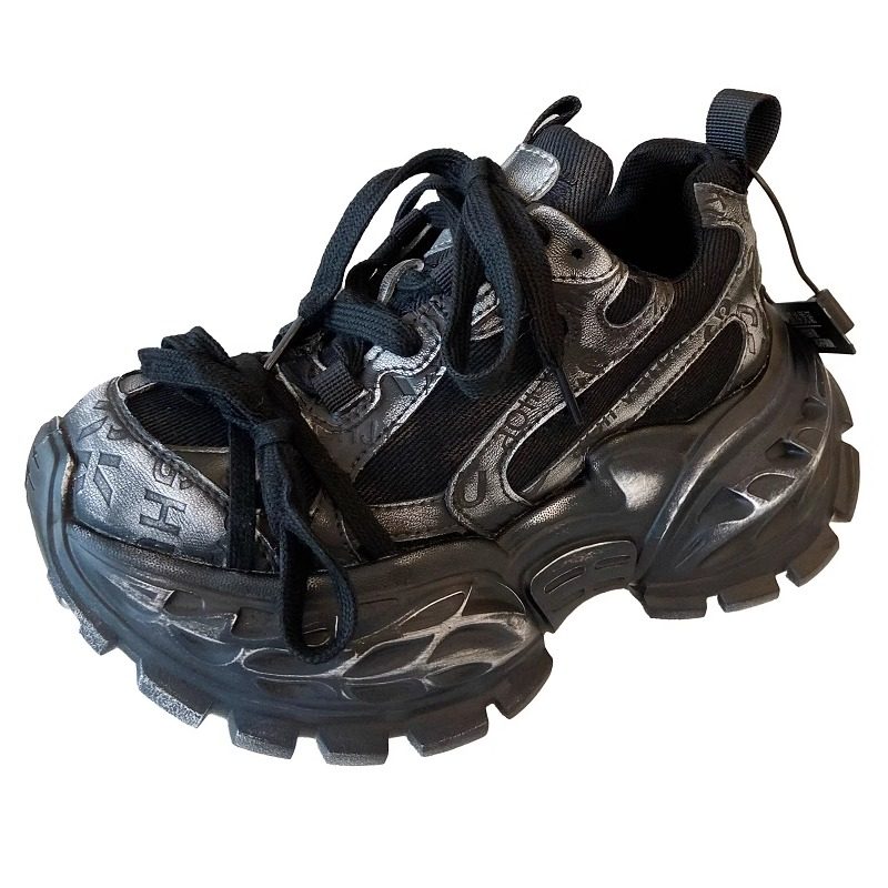 厚底老爹鞋女款2025新款配阔腿裤真皮复古做旧擦色松糕增高休闲鞋