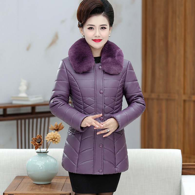 中老年女装皮衣外套40岁50中年女士皮夹克妈妈秋冬装PU皮棉衣棉袄