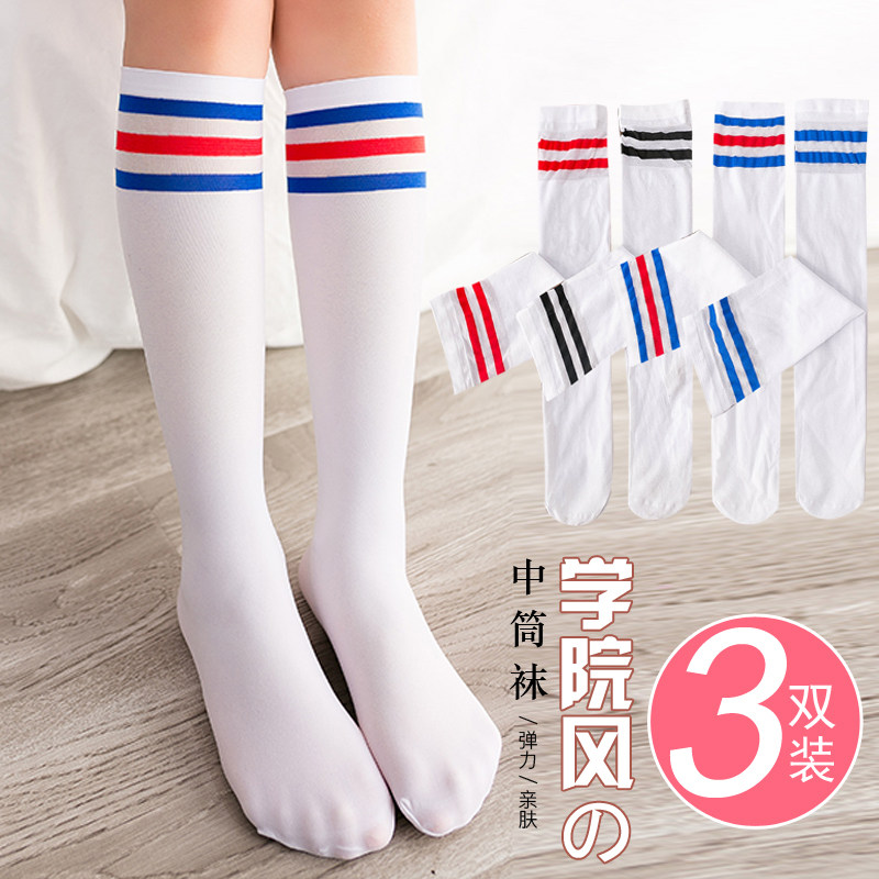 311线报网描述:学院风搭配校服条纹条杠中筒袜 过膝长筒袜