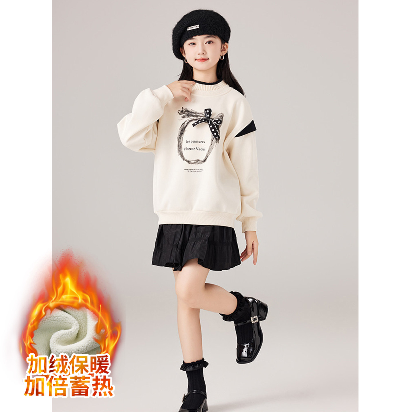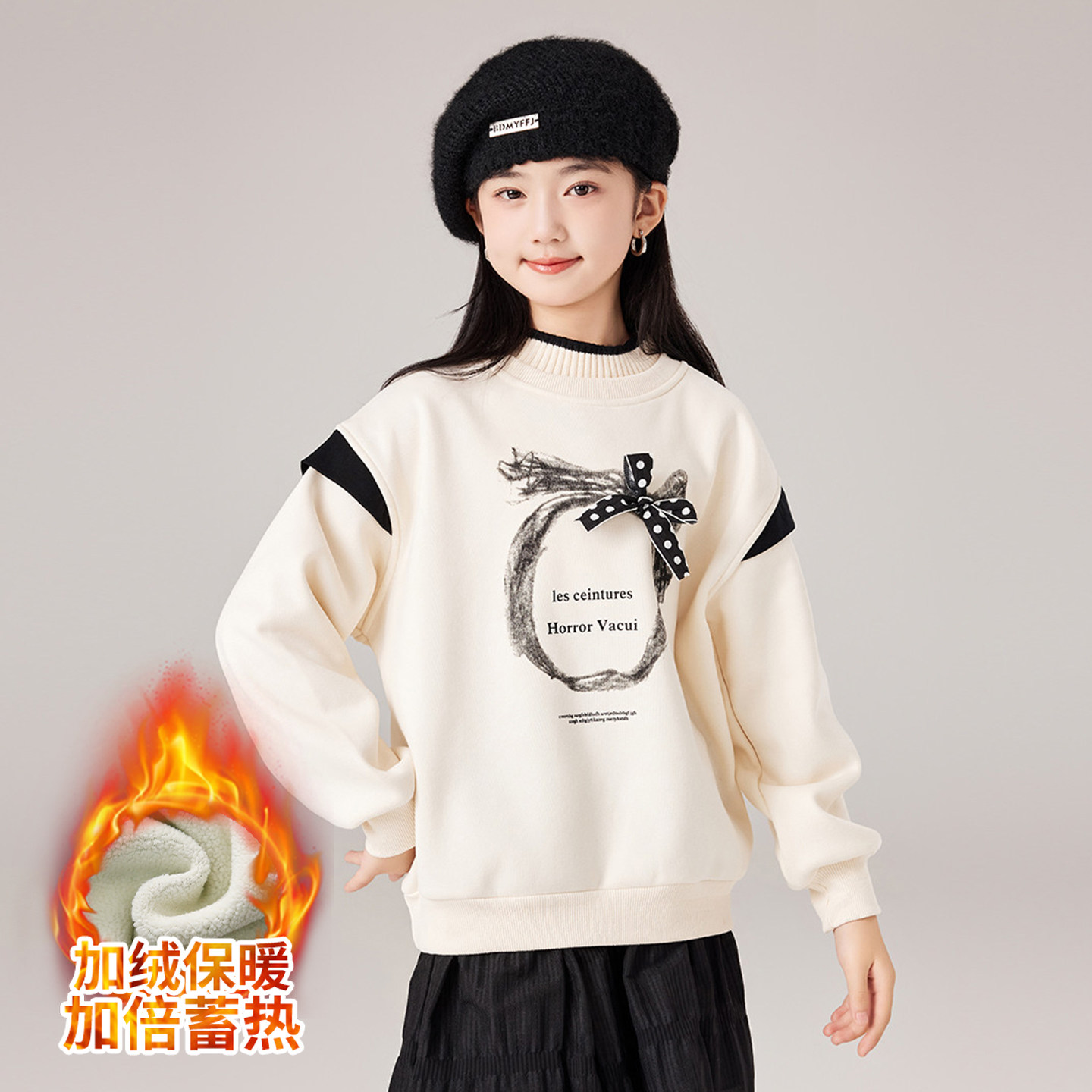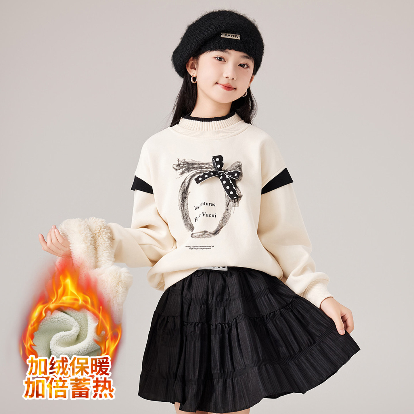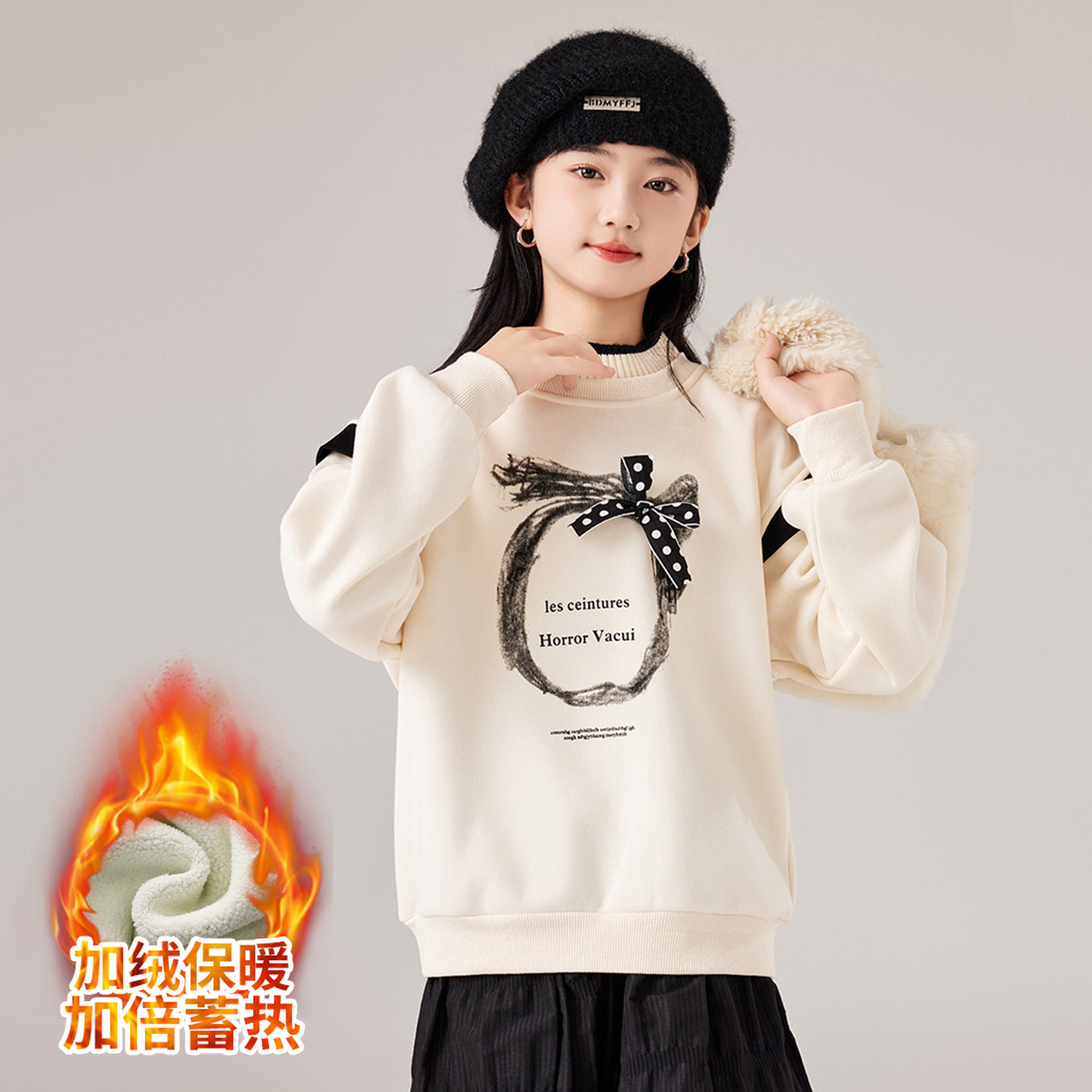 女大童冬季加绒加厚卫衣2025秋冬款新款初高中生少女休闲保暖上衣