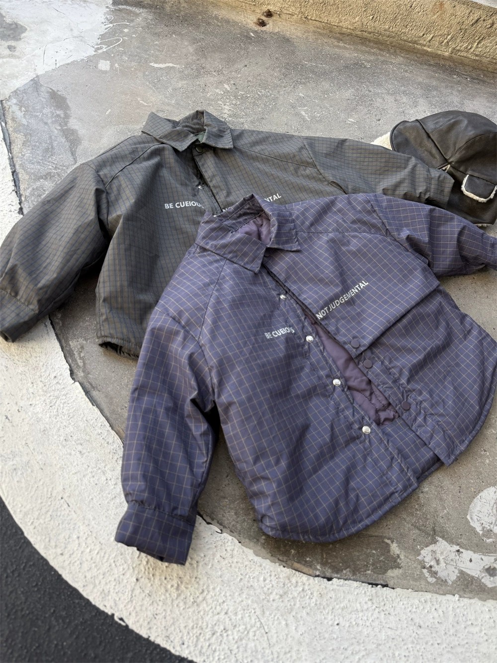 男童加厚外套2025新款秋冬儿童洋气时髦中大童格子衬衫外穿棉服潮