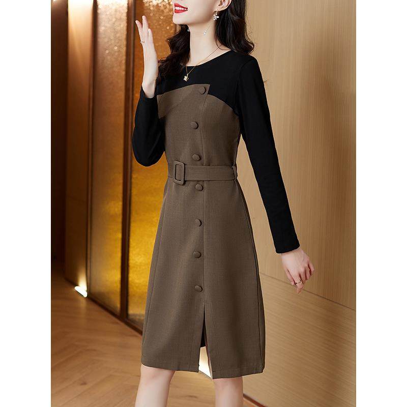 MONLOUVE高级感气质连衣裙子女士春秋冬季2025年新款收腰小个子长