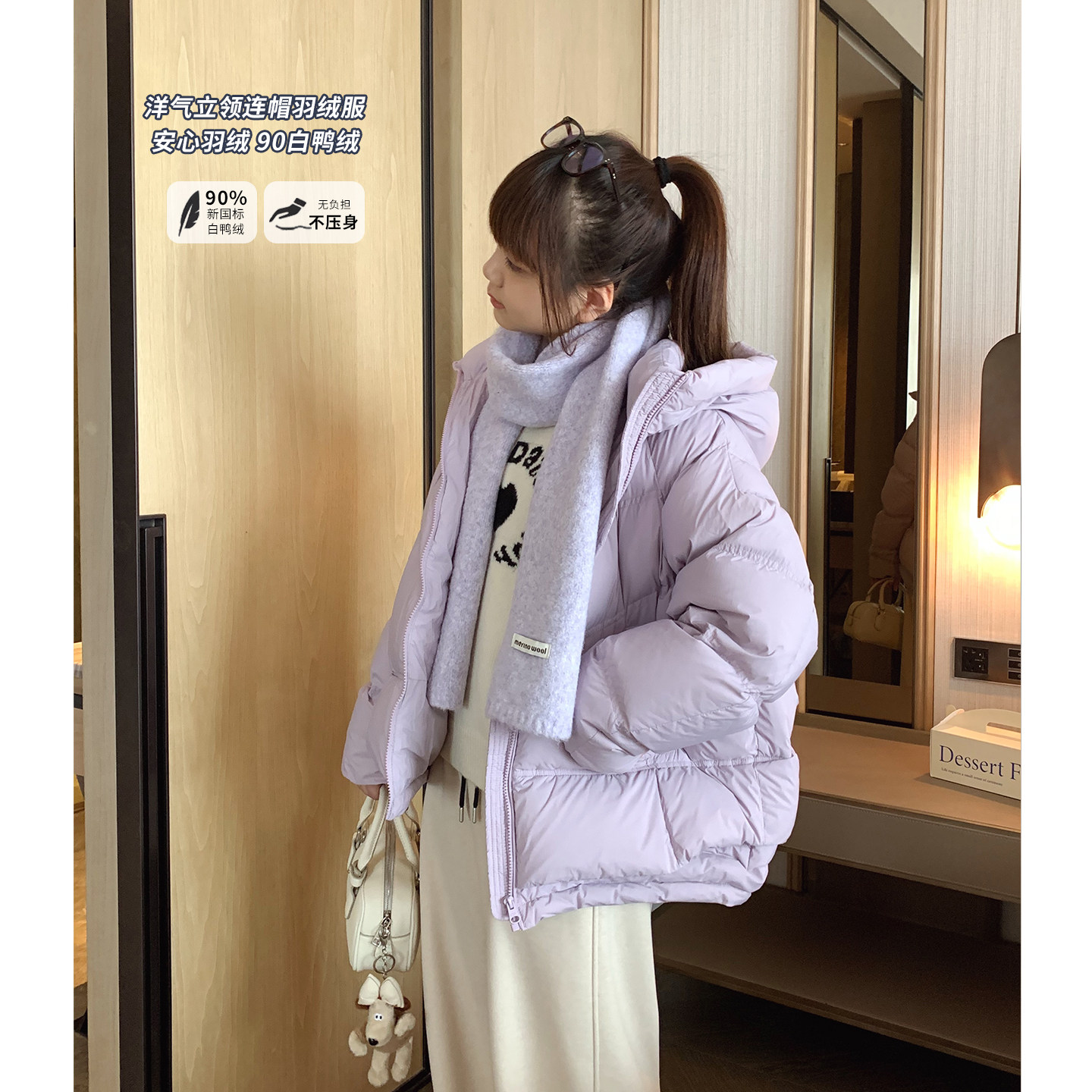 女大童连帽羽绒服2025冬季新款初中生休闲保暖面包服少女90绒外套