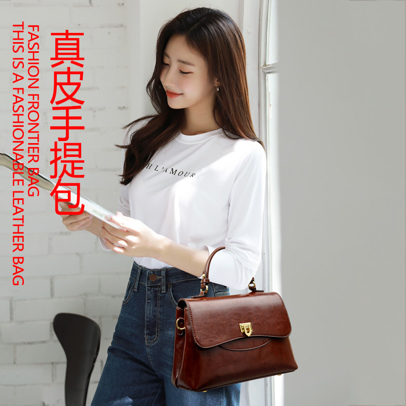 袋鼠真皮女包斜挎包小方包女款包包2025新款复古手提单肩包软牛皮
