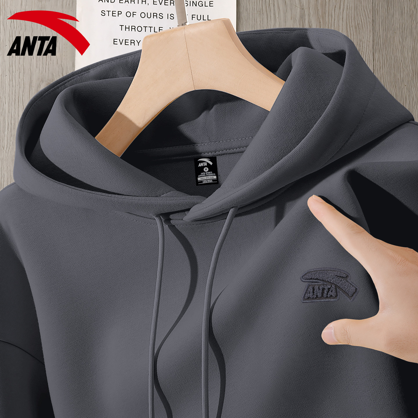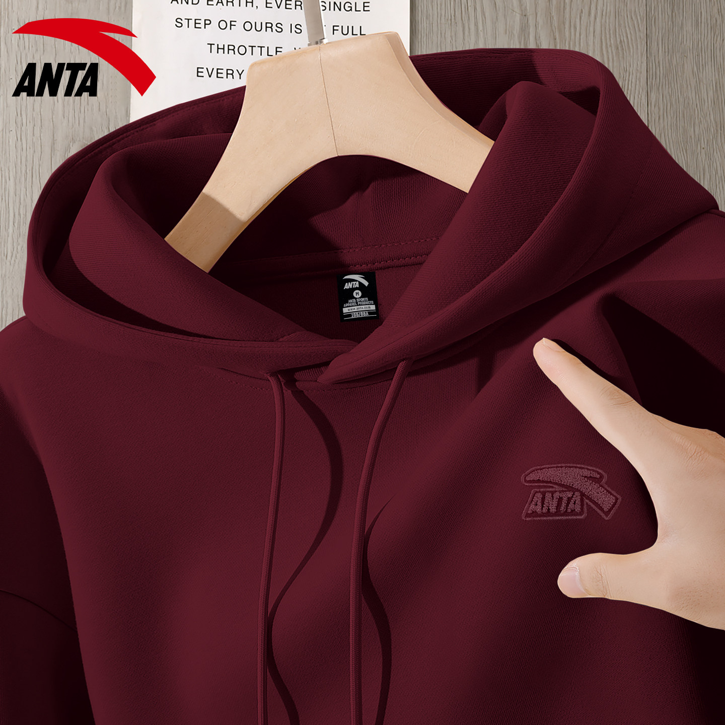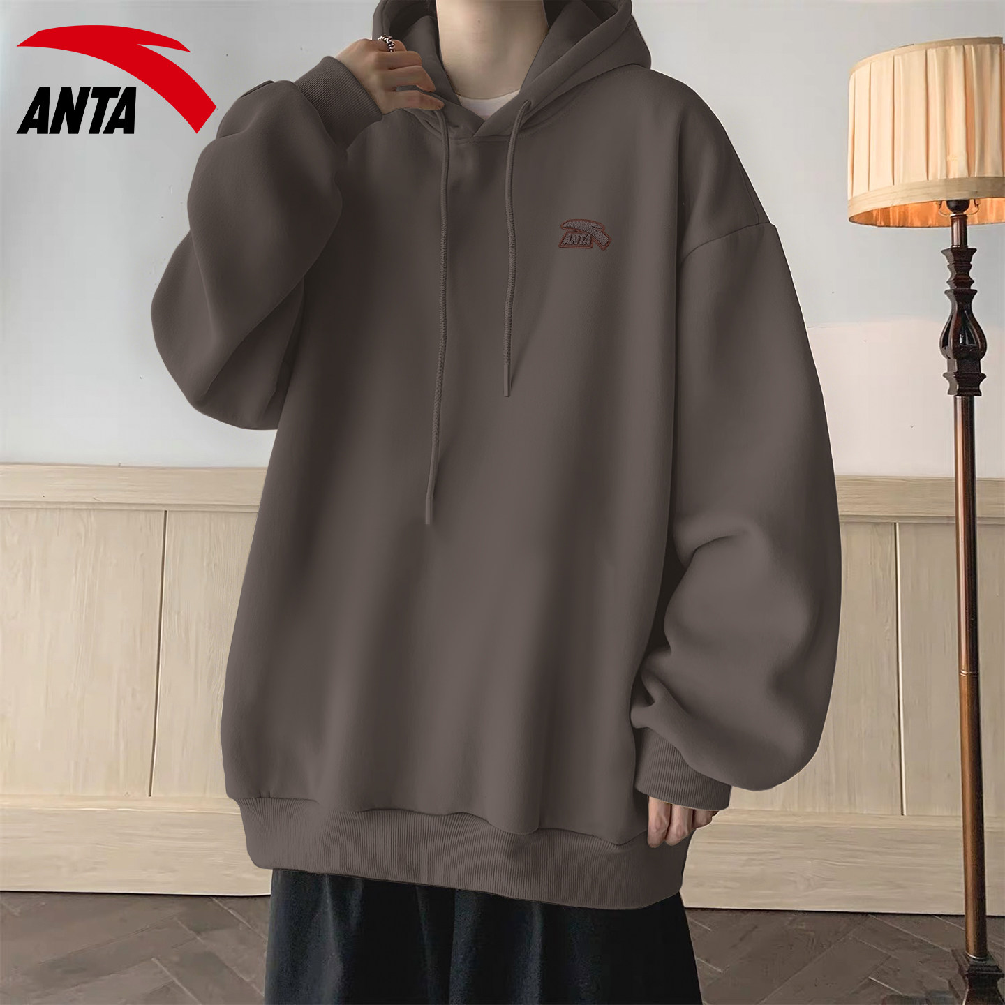 安踏连帽卫衣男款复古咖色宽松潮流帽衫官网旗舰加绒运动休闲上衣