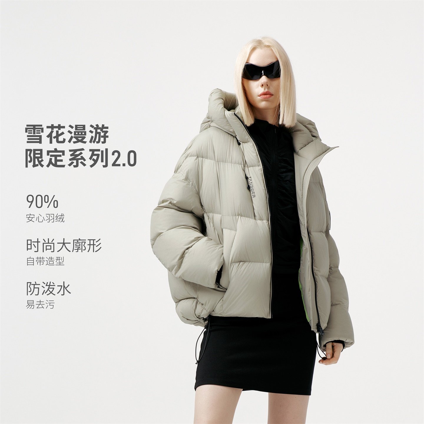 坦博尔连帽短款鹅绒羽绒服女款冬季2025新款宽松休闲加厚保暖外套