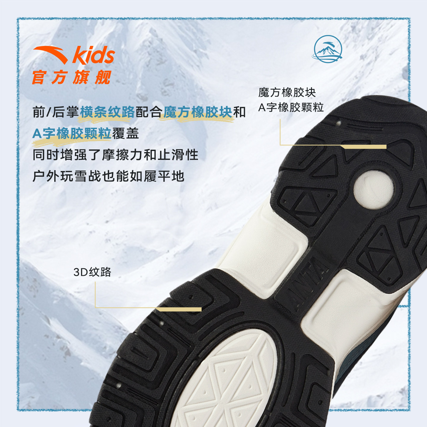 安踏儿童男童高帮雪地靴二棉鞋加绒保暖冬鞋冬季新款运动鞋棉靴子