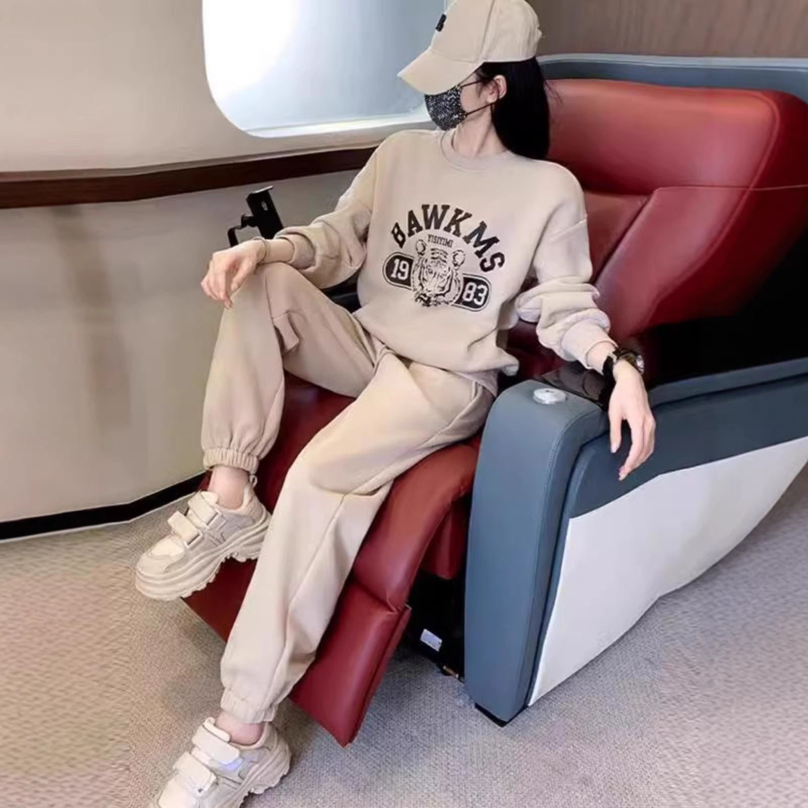 高级感减龄休闲运动套装女秋冬季新款时尚加厚加绒印花卫衣两件套
