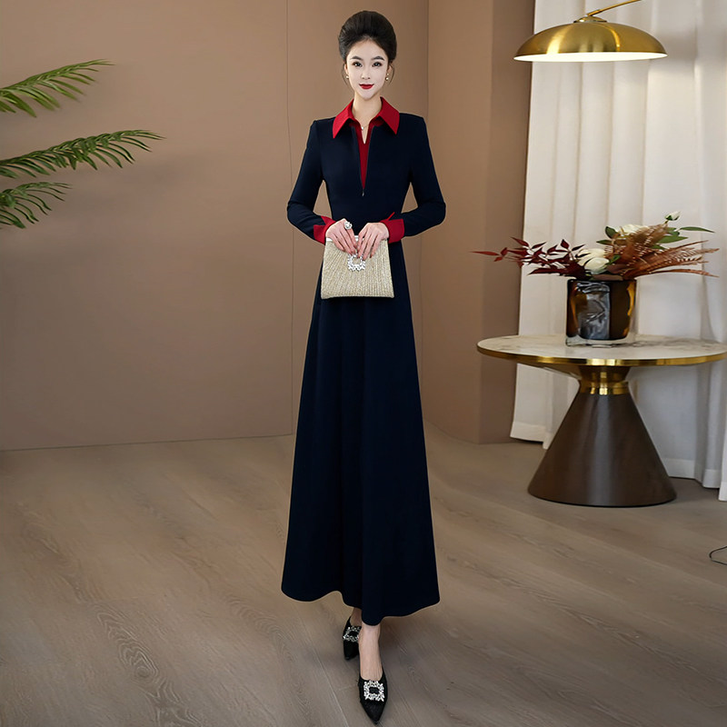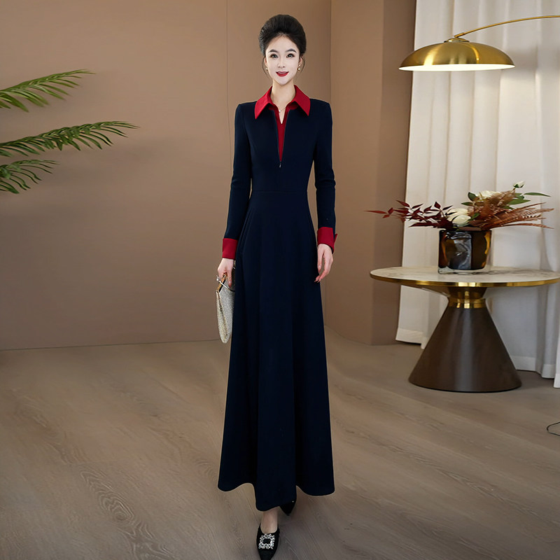 秋冬连衣裙女新款轻奢高级感气质显瘦长袖连身裙女假两件长裙1111