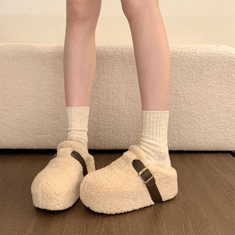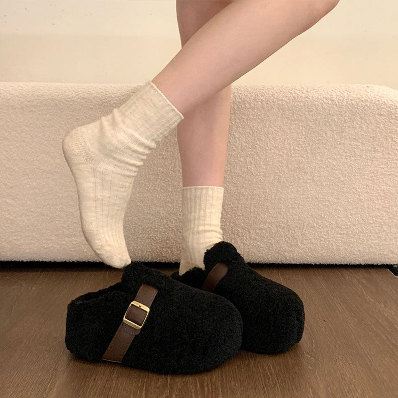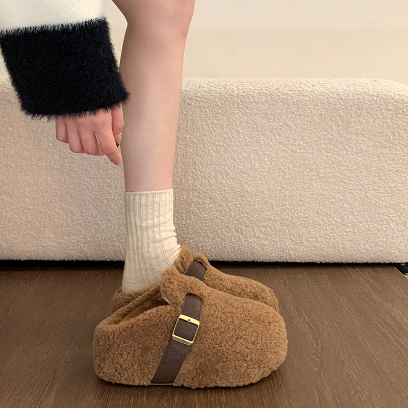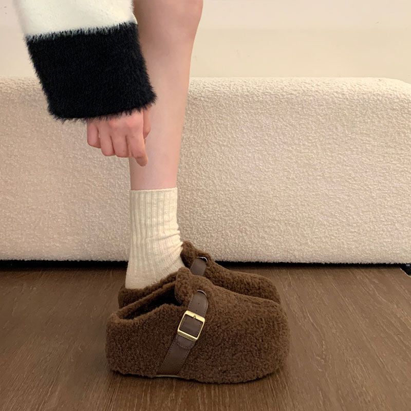 厚底增高加绒勃肯鞋毛毛拖鞋女外穿2025冬季新款雪地靴棉拖鞋黑色