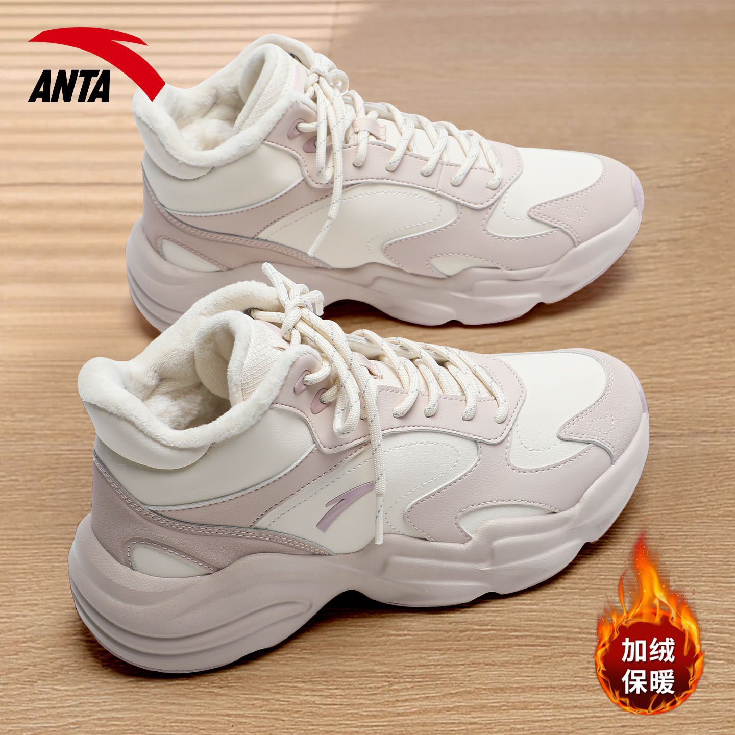 安踏加绒女鞋大棉鞋2025新款冬季保暖防寒雪地靴子防滑厚底老爹鞋