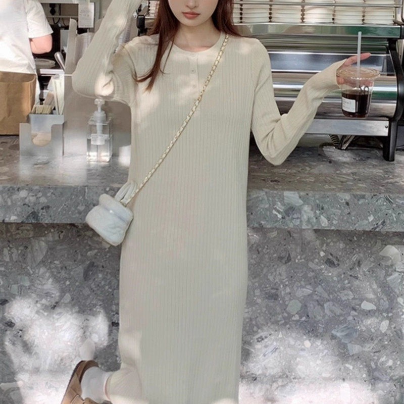 春秋新款小个子黑色针织连衣裙子女秋冬季搭配大衣显瘦打底裙长裙