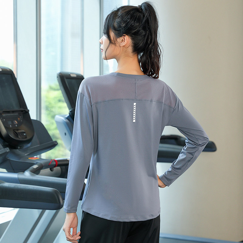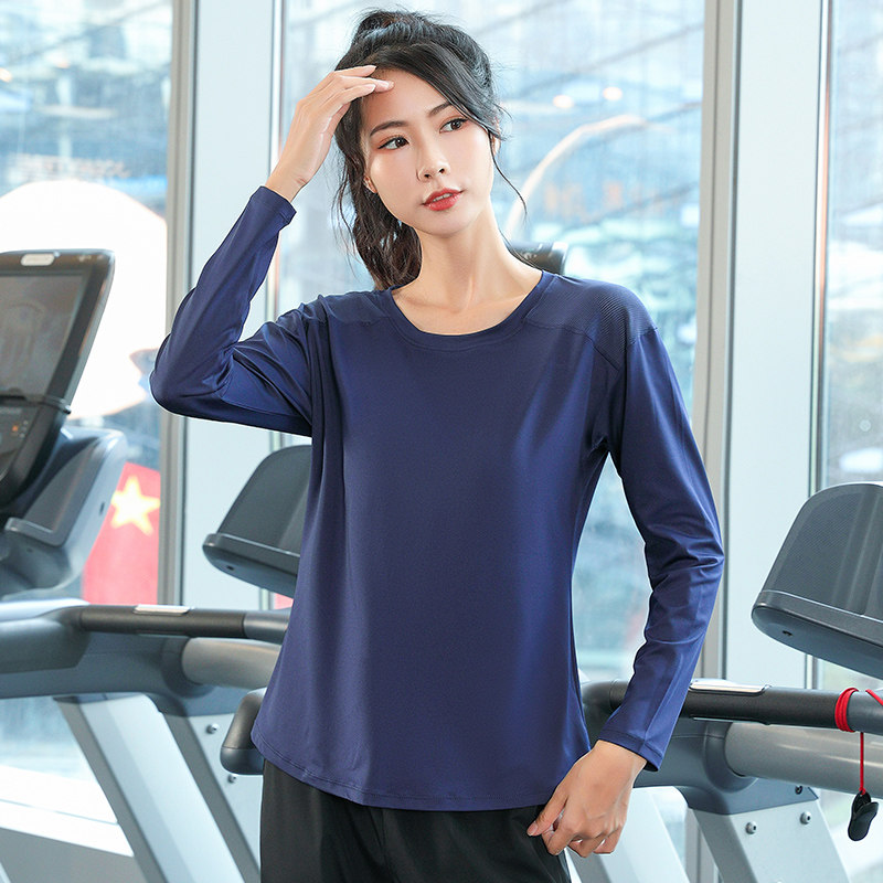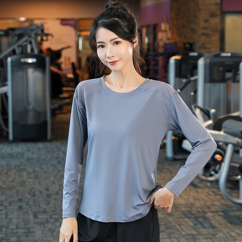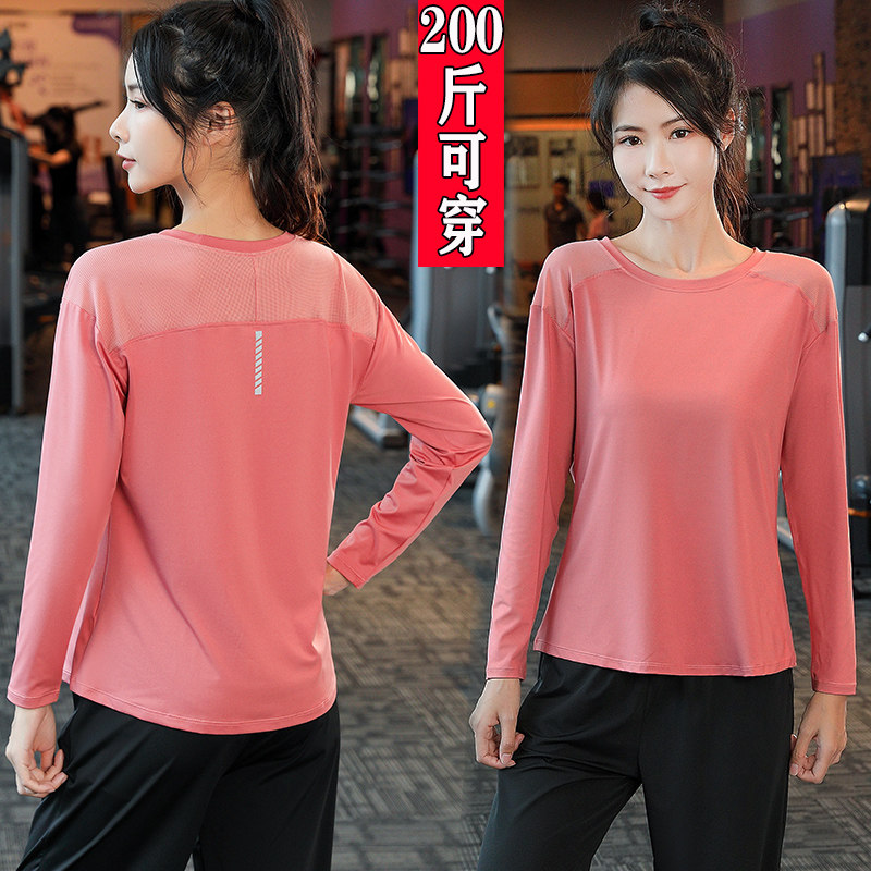 胖mm大码宽松女健身运动服跑步速干春秋长袖T恤瑜伽裤搭配的上衣