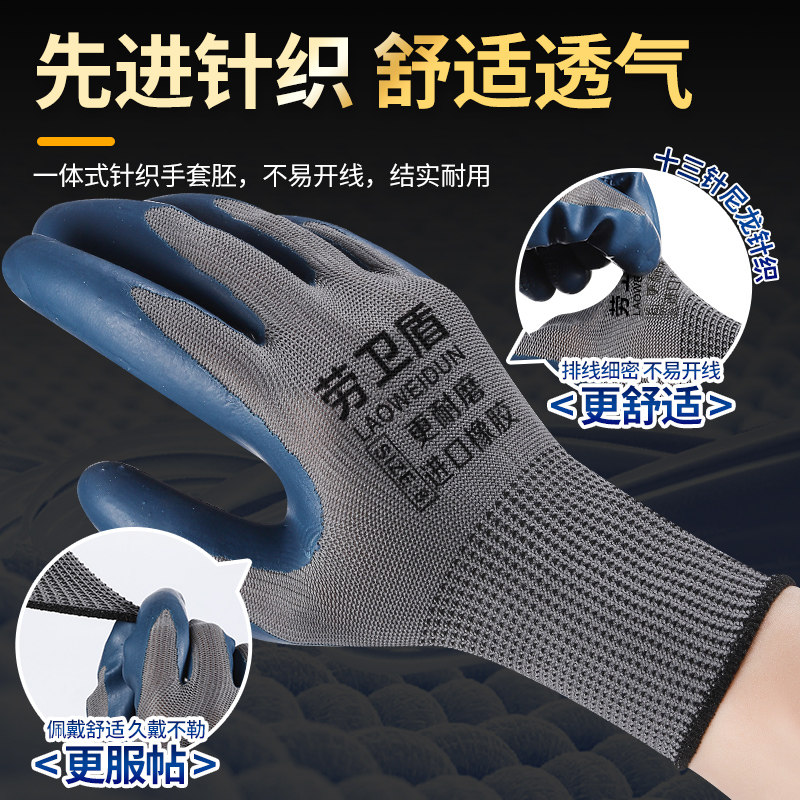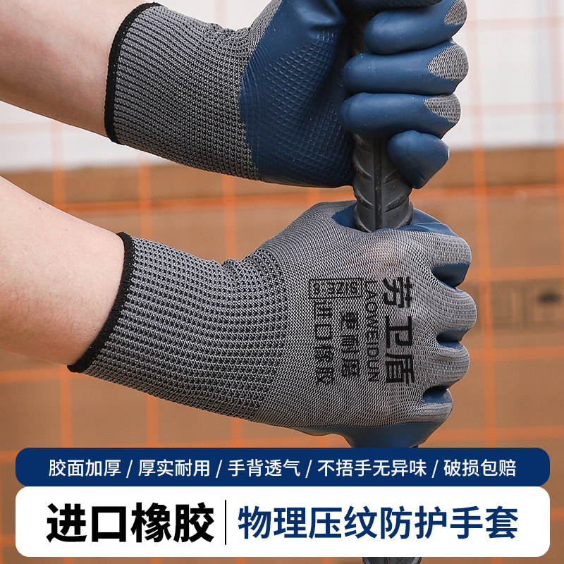 手套劳保工作耐磨加厚耐用防滑防水透气工地劳动干活橡胶浸胶手套