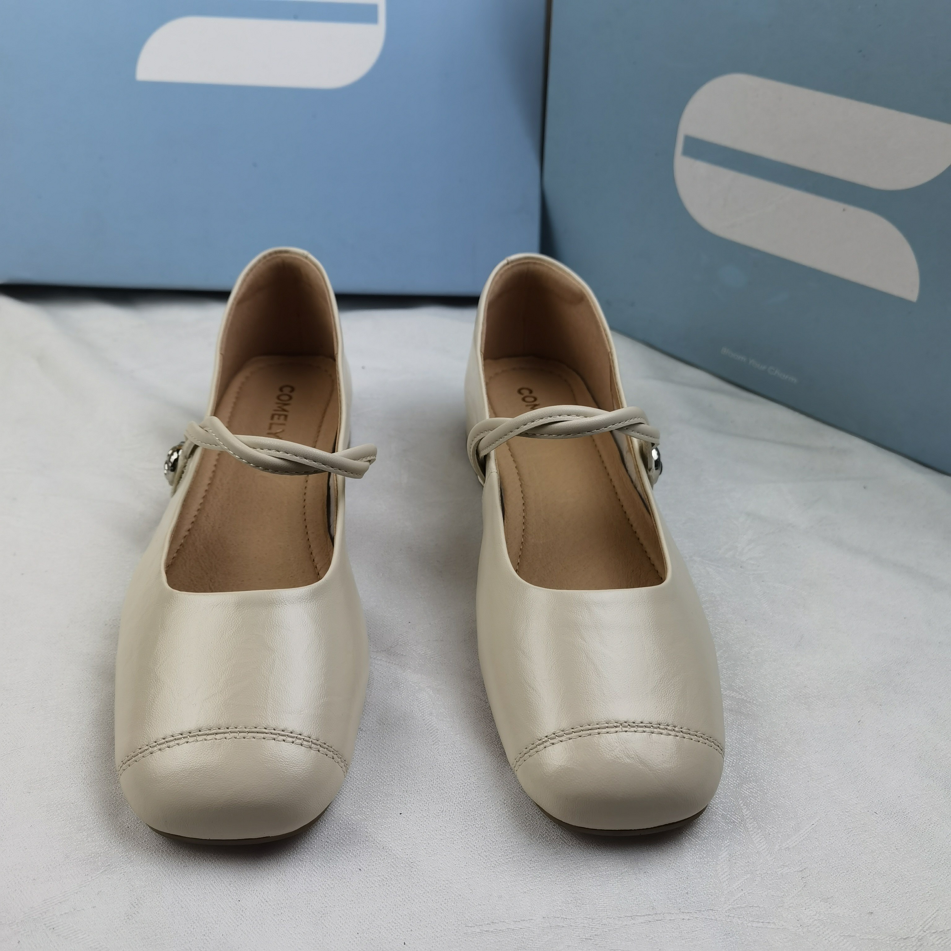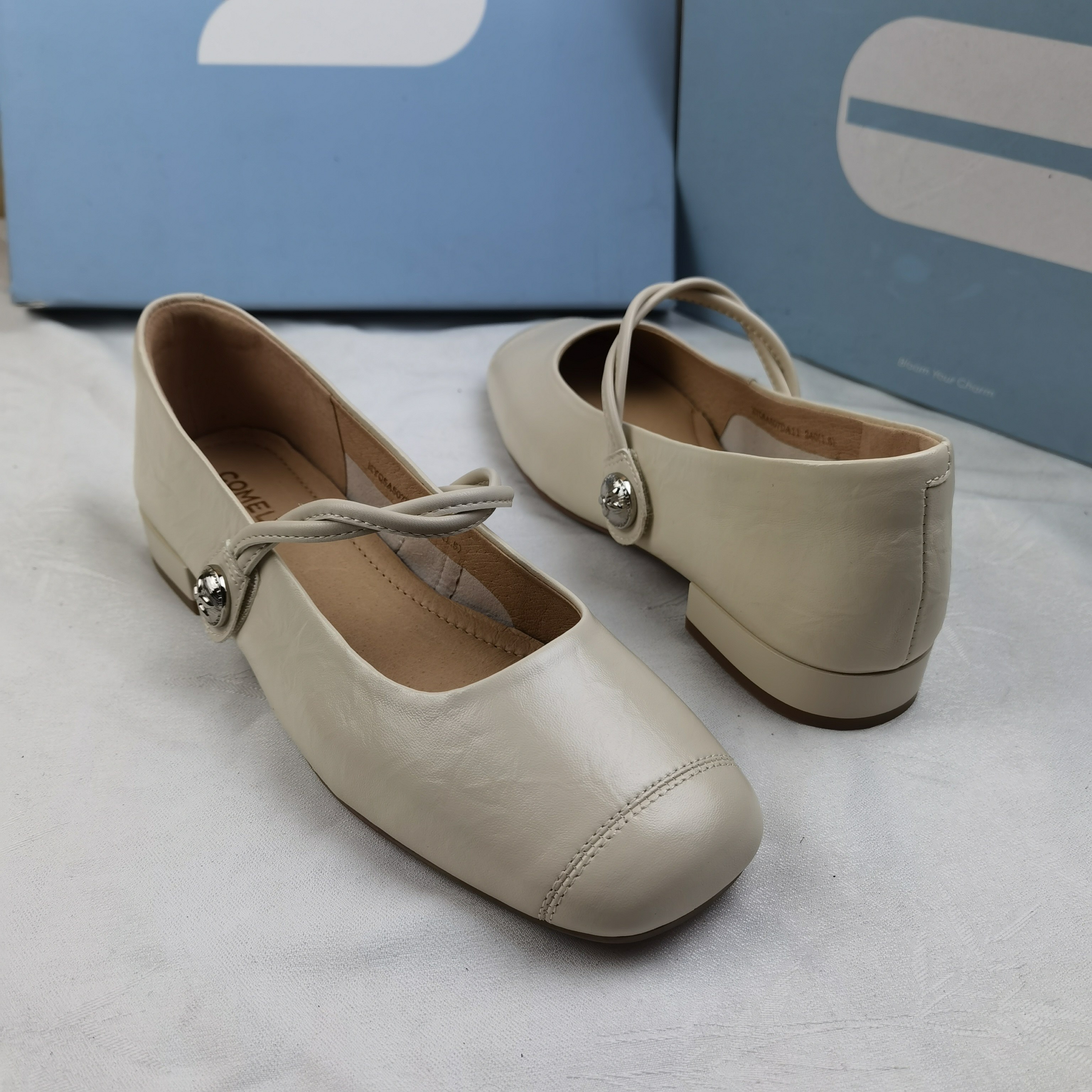 品牌正品商场同款新款女鞋休闲鞋玛丽珍鞋平底单鞋5A507米白色38