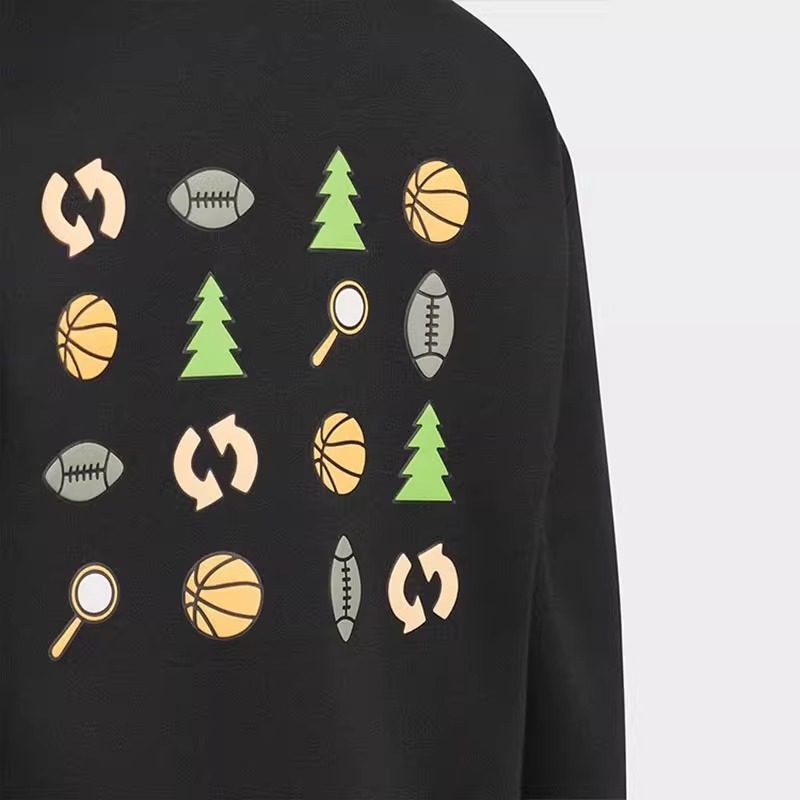 Adidas阿迪达斯男小童秋冬加绒印花圆领运动休闲卫衣套头衫IZ2658