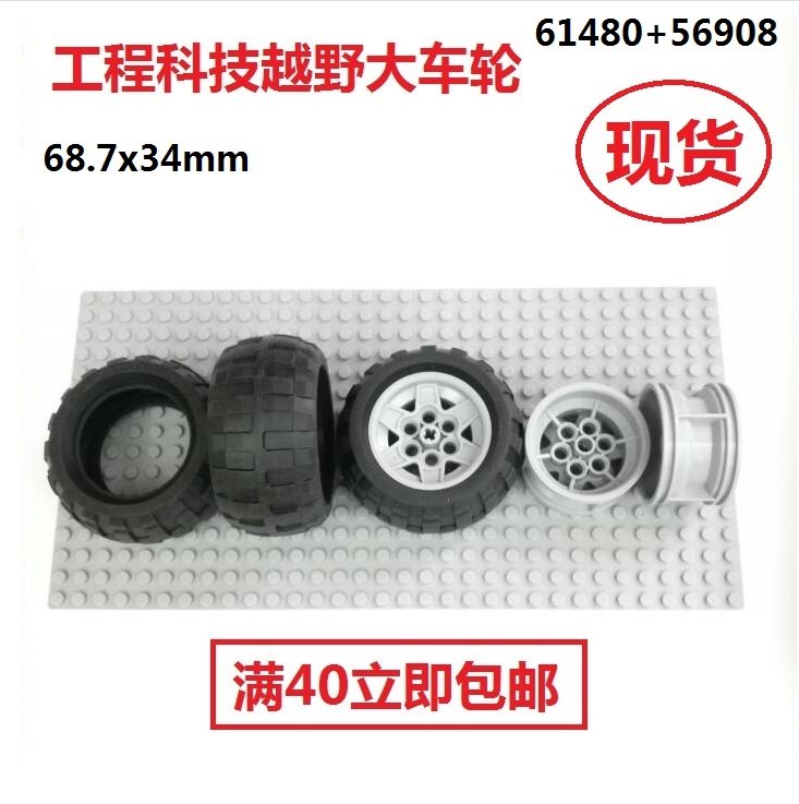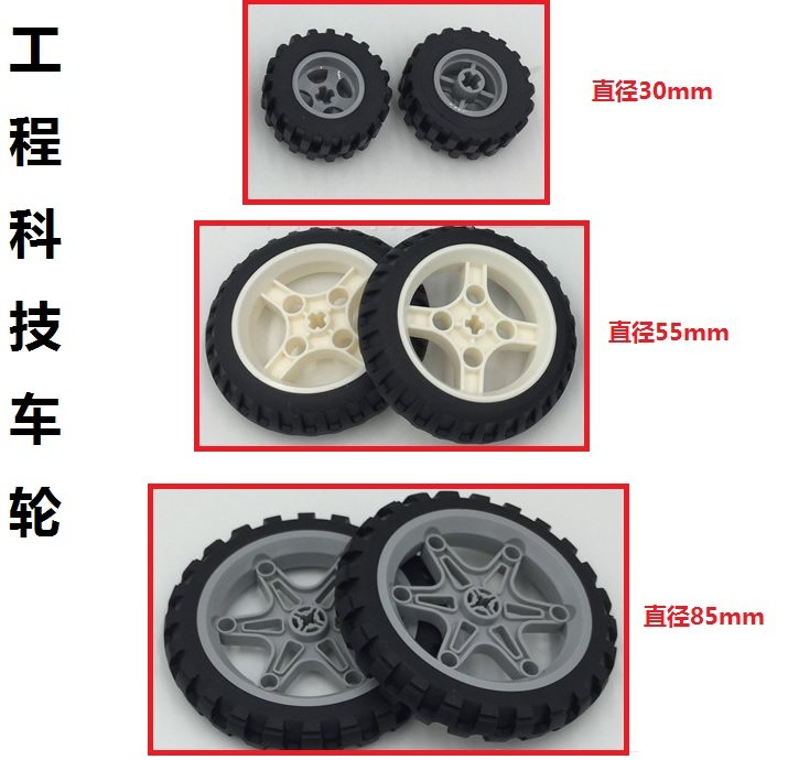 小颗粒积木2902+2903兼容科技件机械大车轮轮胎十字轴赛车轮