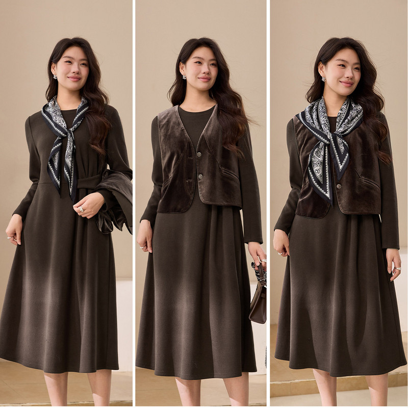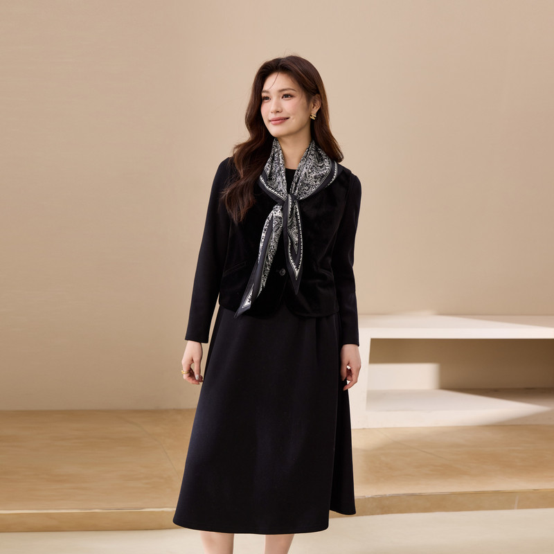 【高级感轻熟风套装】纤莉秀大码女装复古气质两件套胖mm冬装新款