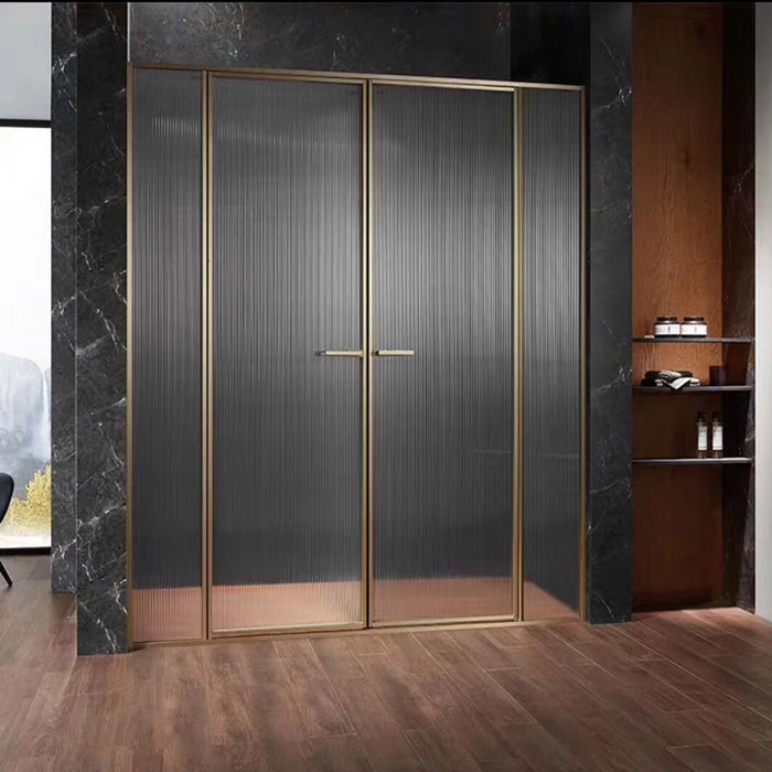 极窄边框不锈钢整体浴室简易屏风干湿分离隔断钢化玻璃金色淋浴房