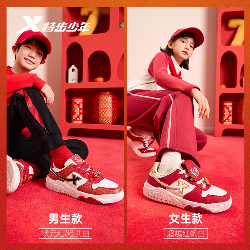 福燈贺岁|特步童鞋新年款女童保暖休闲板鞋儿童运动学生防滑鞋子