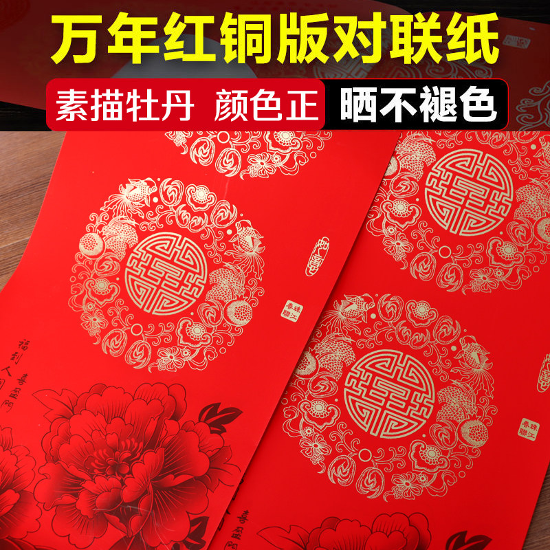 空白手写铜版纸对联纸万年红七言大门春联红纸加厚结婚联不是宣纸