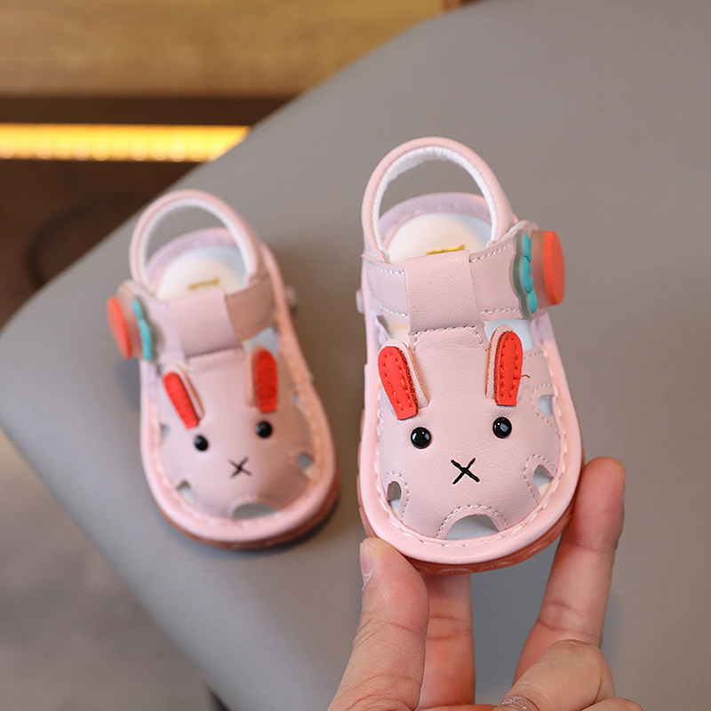 女宝宝鞋子软底婴儿学步鞋带响0-1到3岁防滑叫叫鞋女童公主凉鞋夏