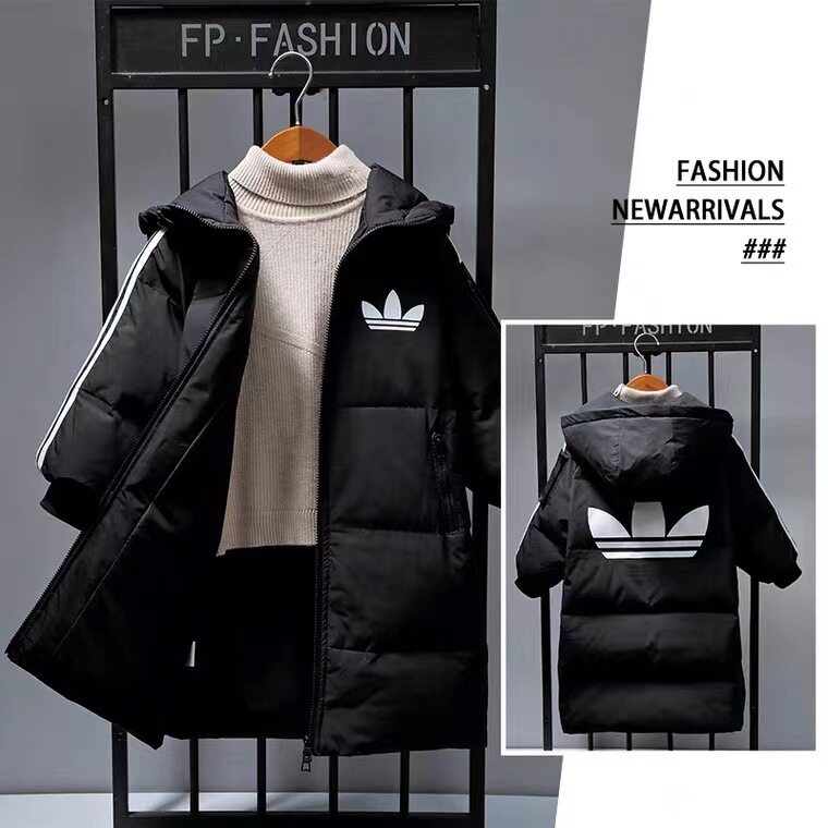 儿童羽绒服男女中长款冬季2026年新款中大童A294黑色白鸭绒轻薄