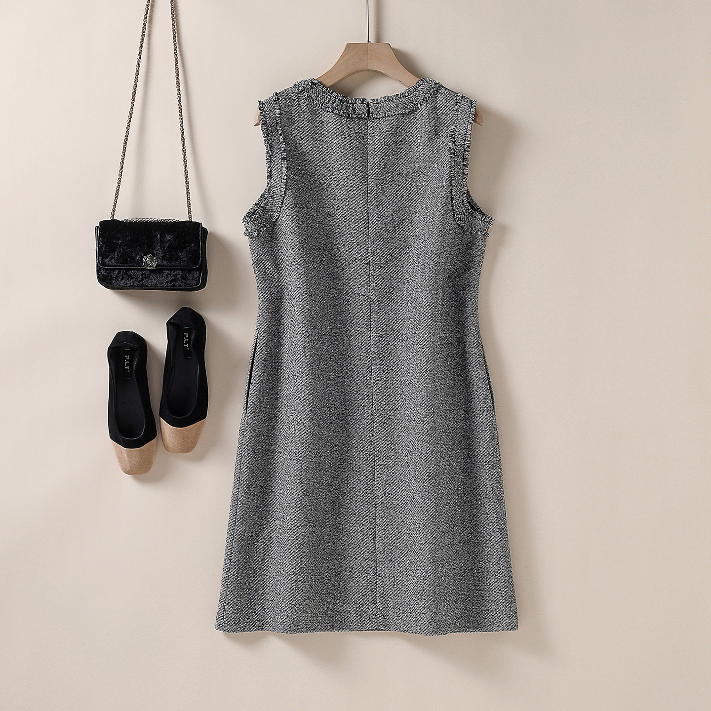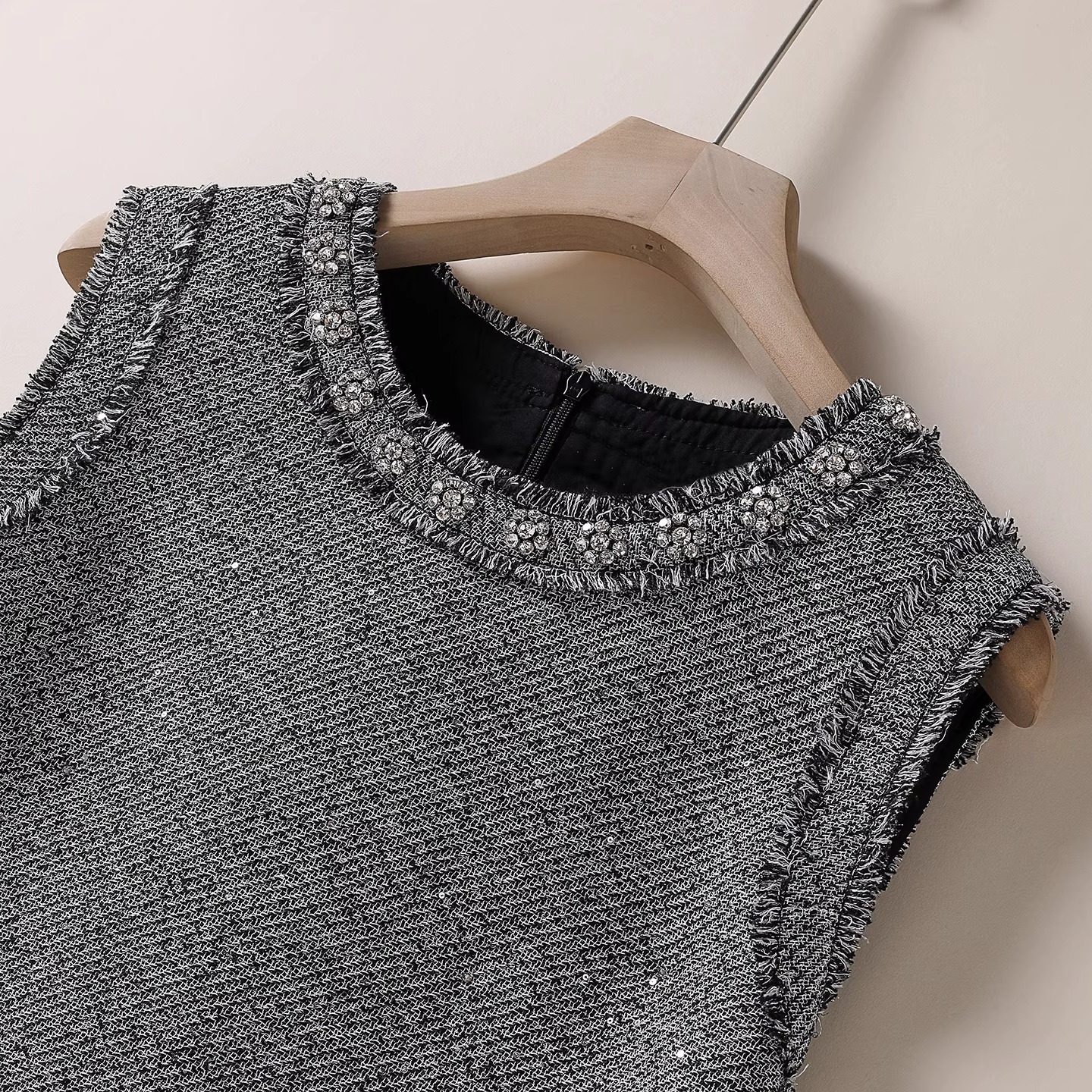 小香风毛呢背心裙重工钉珠小个子A字显瘦连衣裙 2025秋冬新款女装
