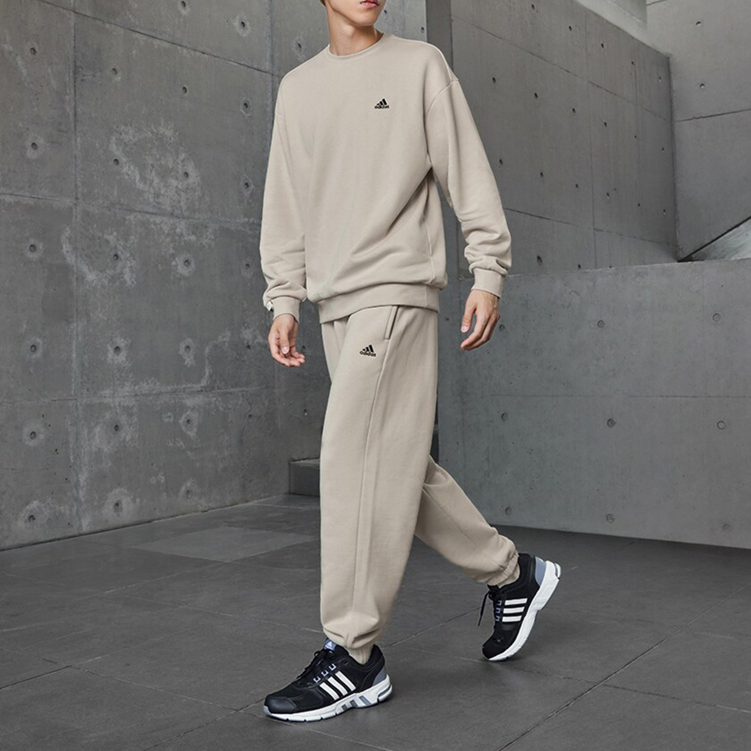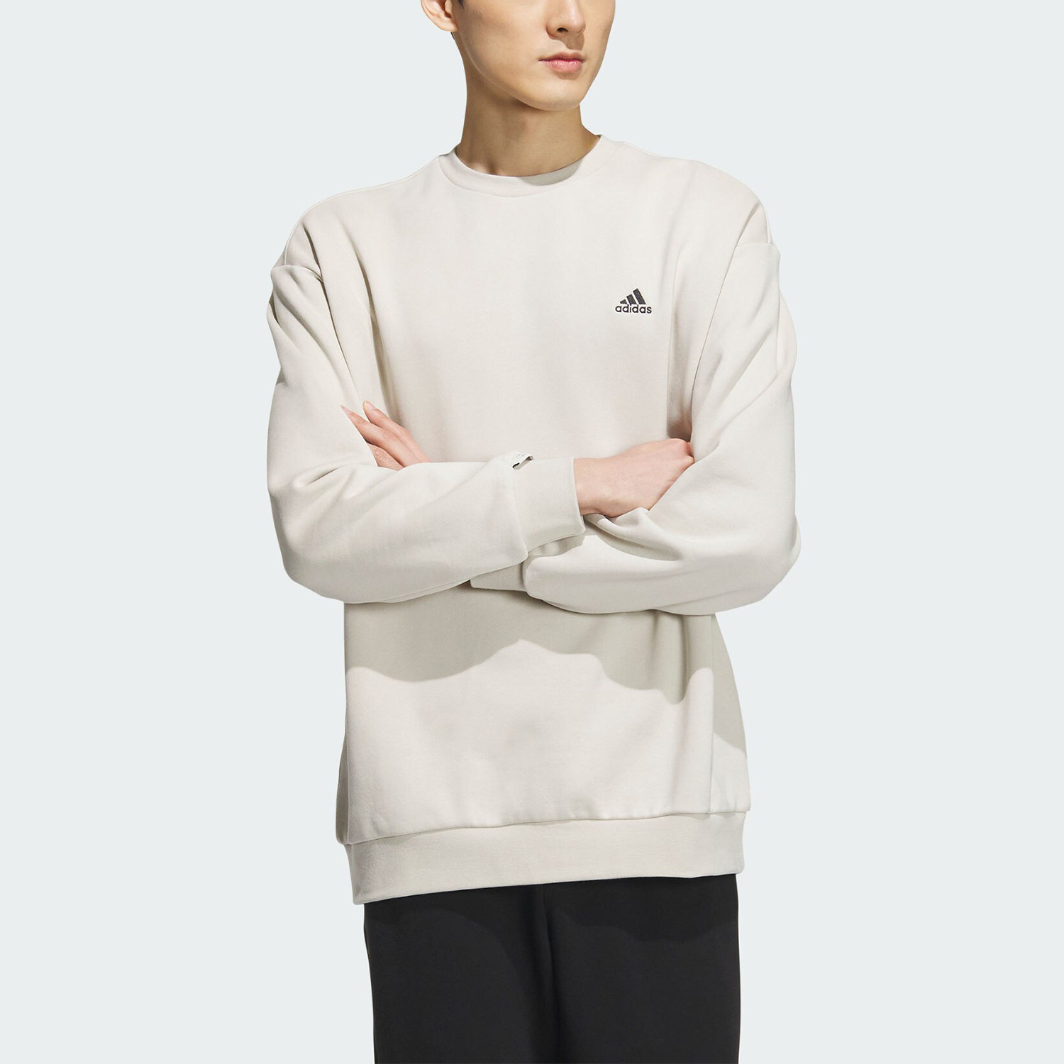 Adidas/阿迪达斯正品加绒加厚情侣款宽松长袖圆领卫衣IV7598