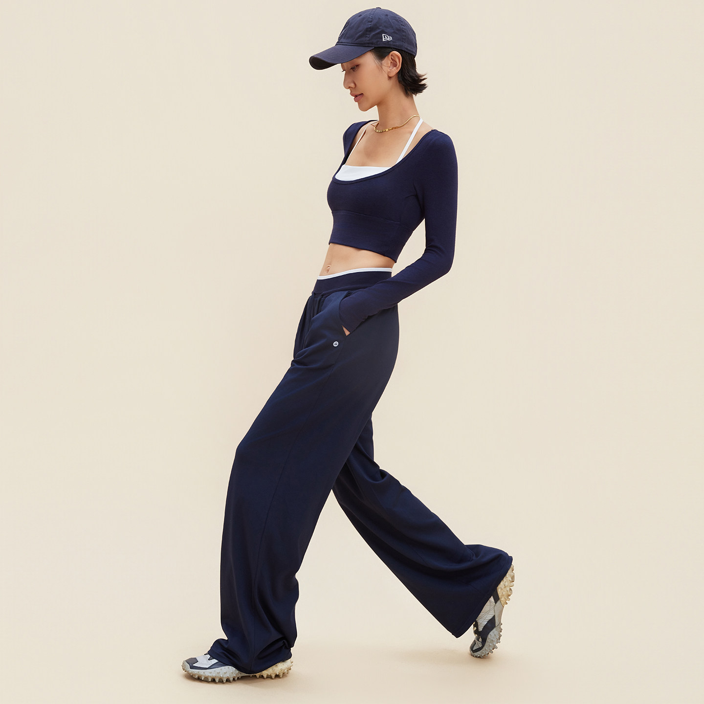 annerun垂感亲肤瑜伽裤女外穿不尴尬直筒裤春秋显瘦休闲运动裤子