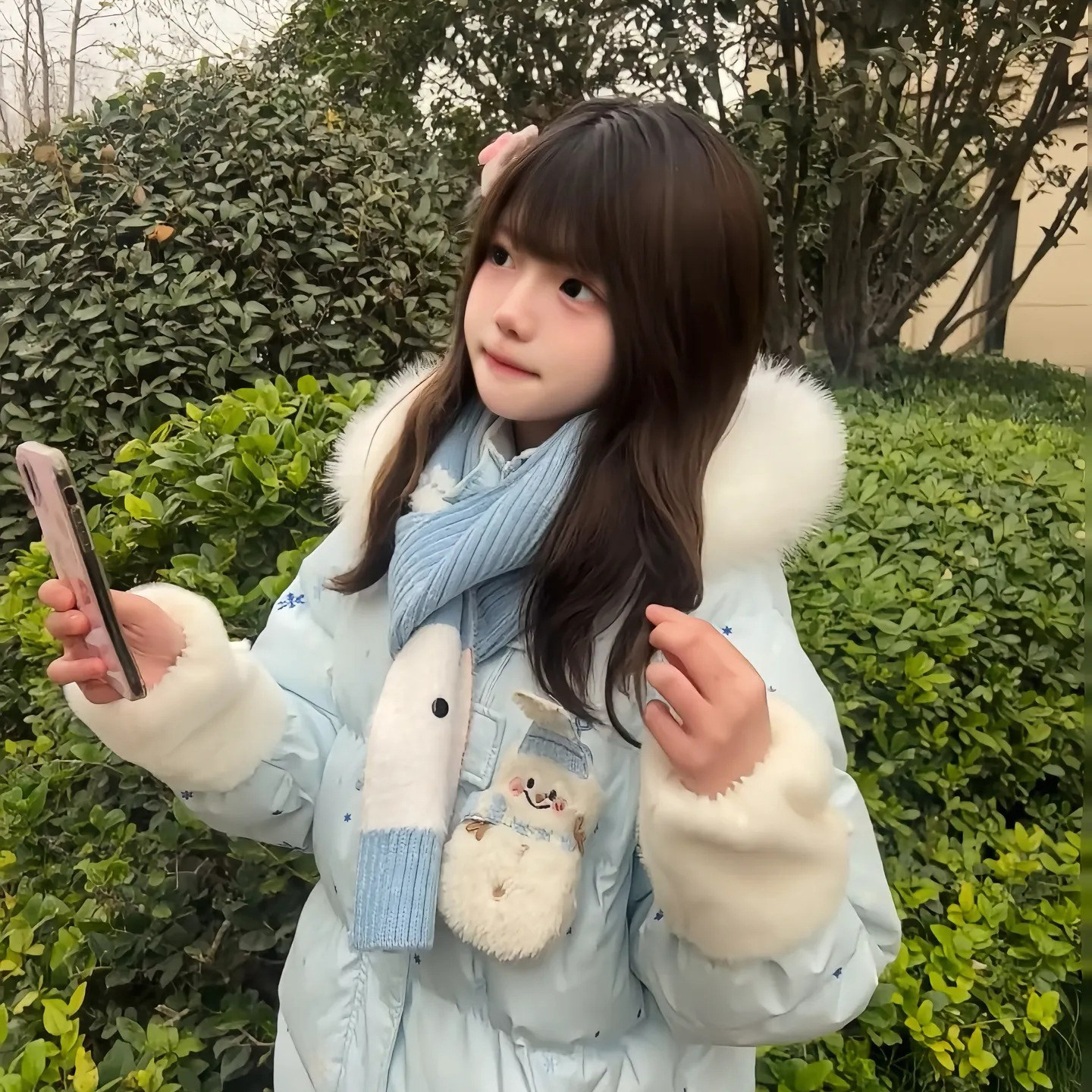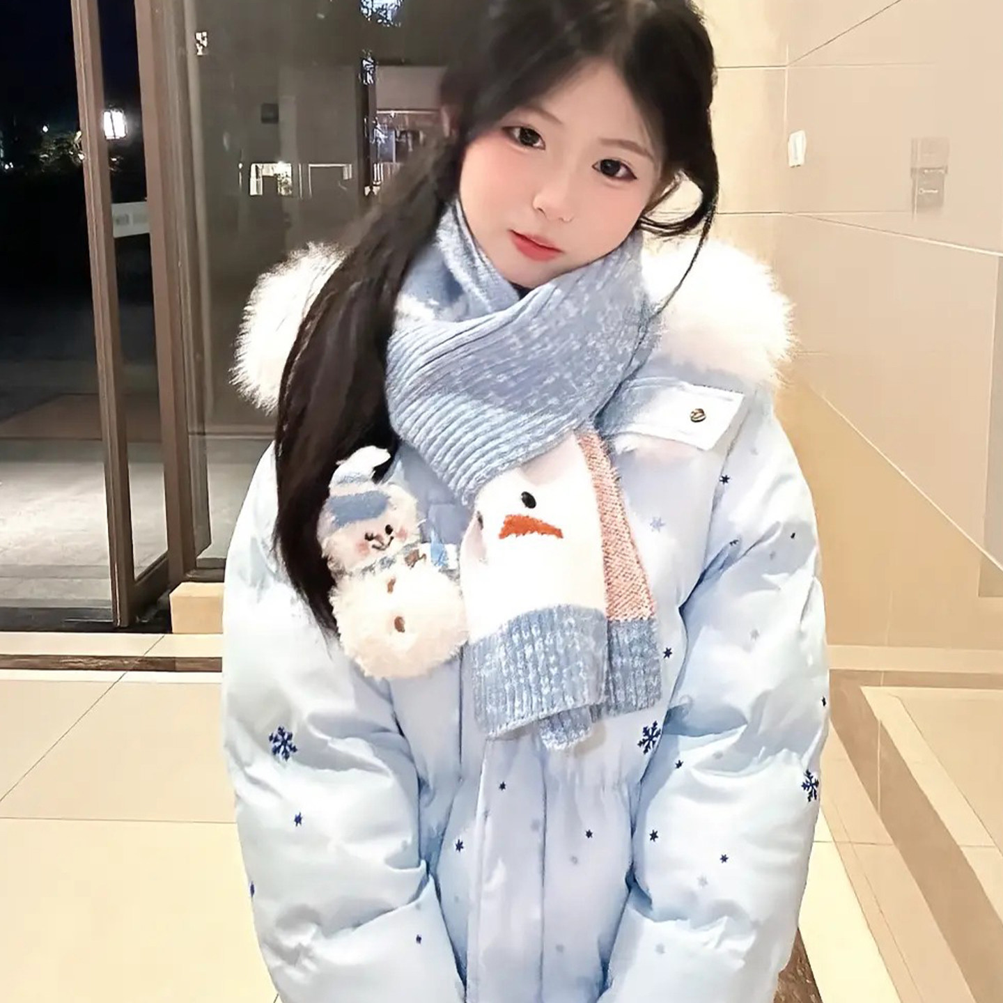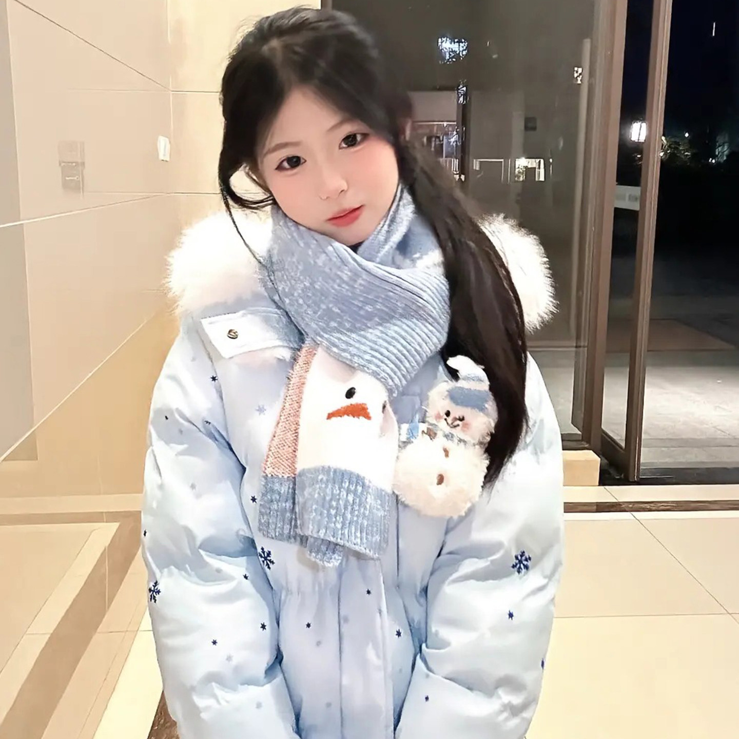 甜美可爱风连帽羽绒棉服女大童初中高中学生学院风卡通保暖外套