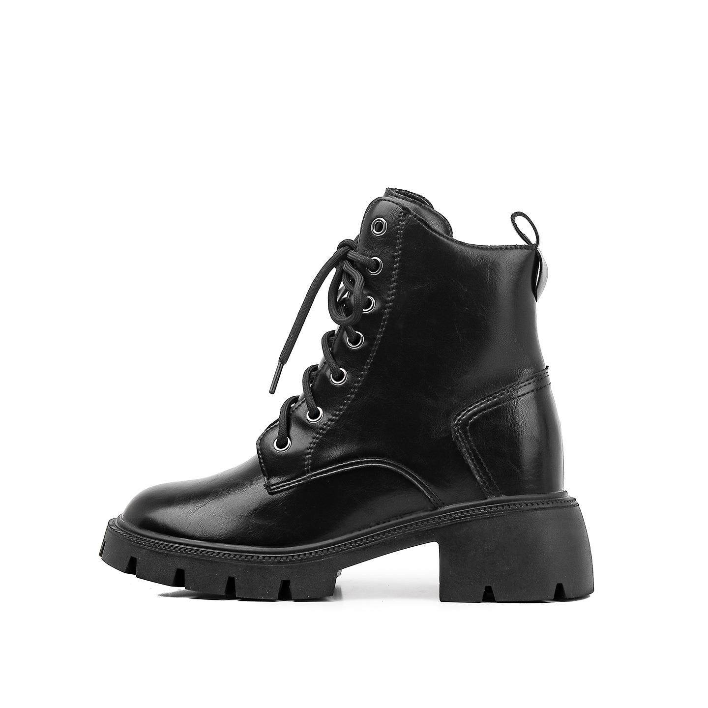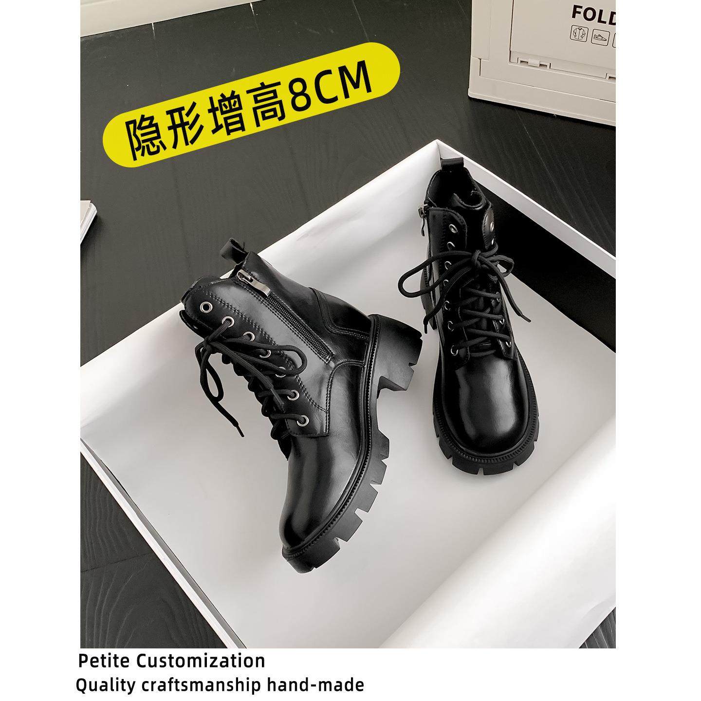 内增高马丁靴女英伦2026年新款秋冬季加绒厚底高跟小个子系带短靴
