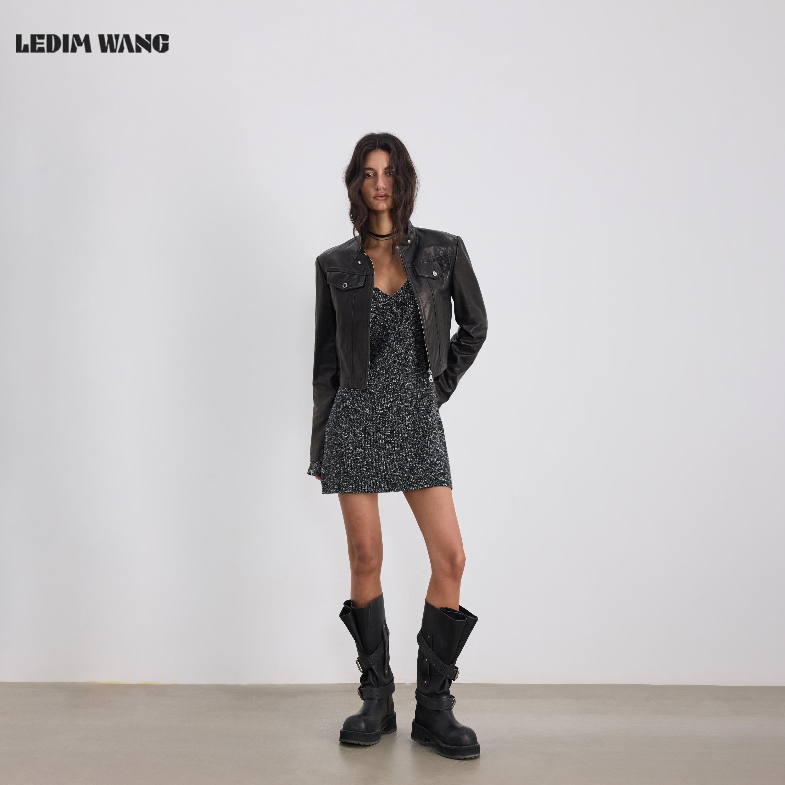 LEDIM WANG甜酷混色针织长袖连衣裙女25秋冬新款黑色修身质感短裙