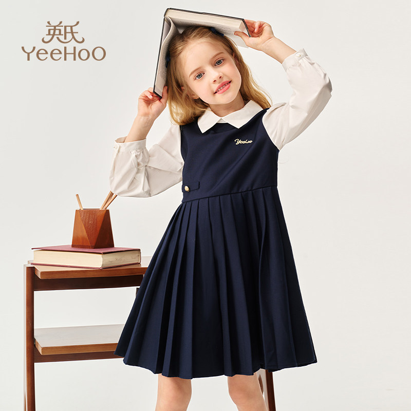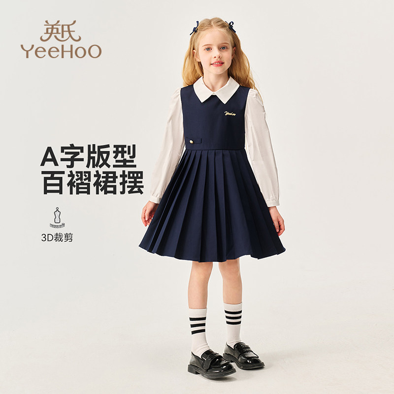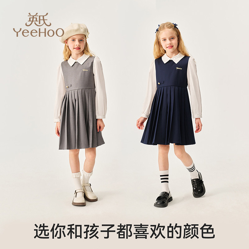 英氏女童学院风连衣裙2026春秋新款中小童洋气气质长裙高级感裙子