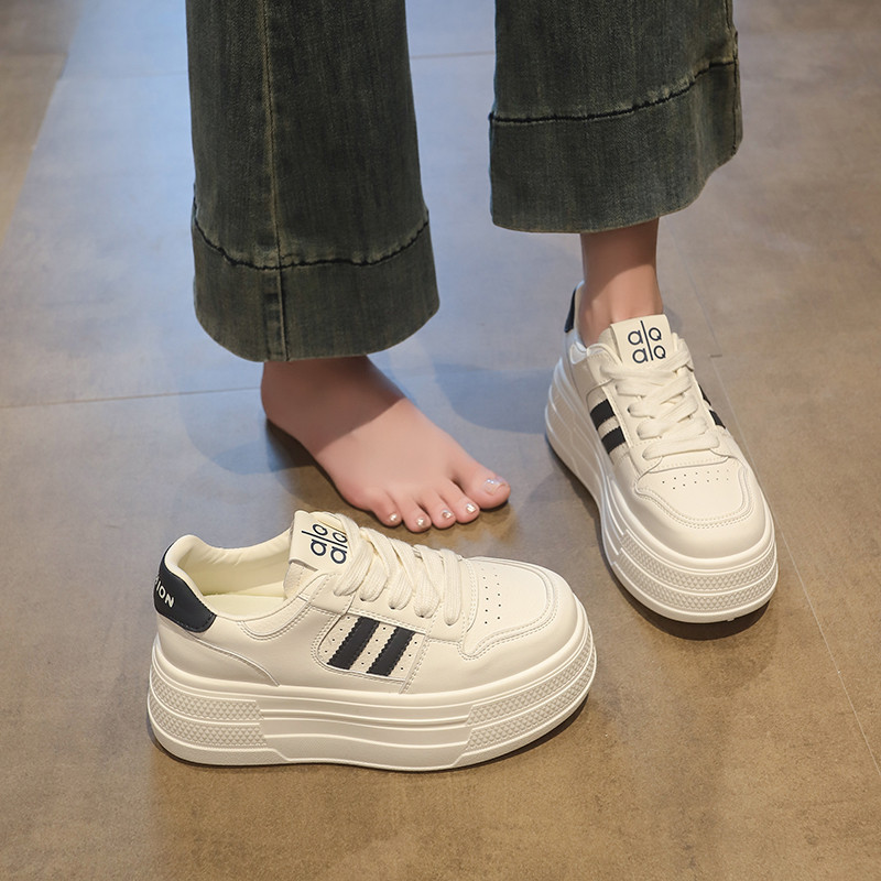 鞋子女2025新款秋季皮面厚底增高小白鞋不累脚松糕鞋轻便运动板鞋
