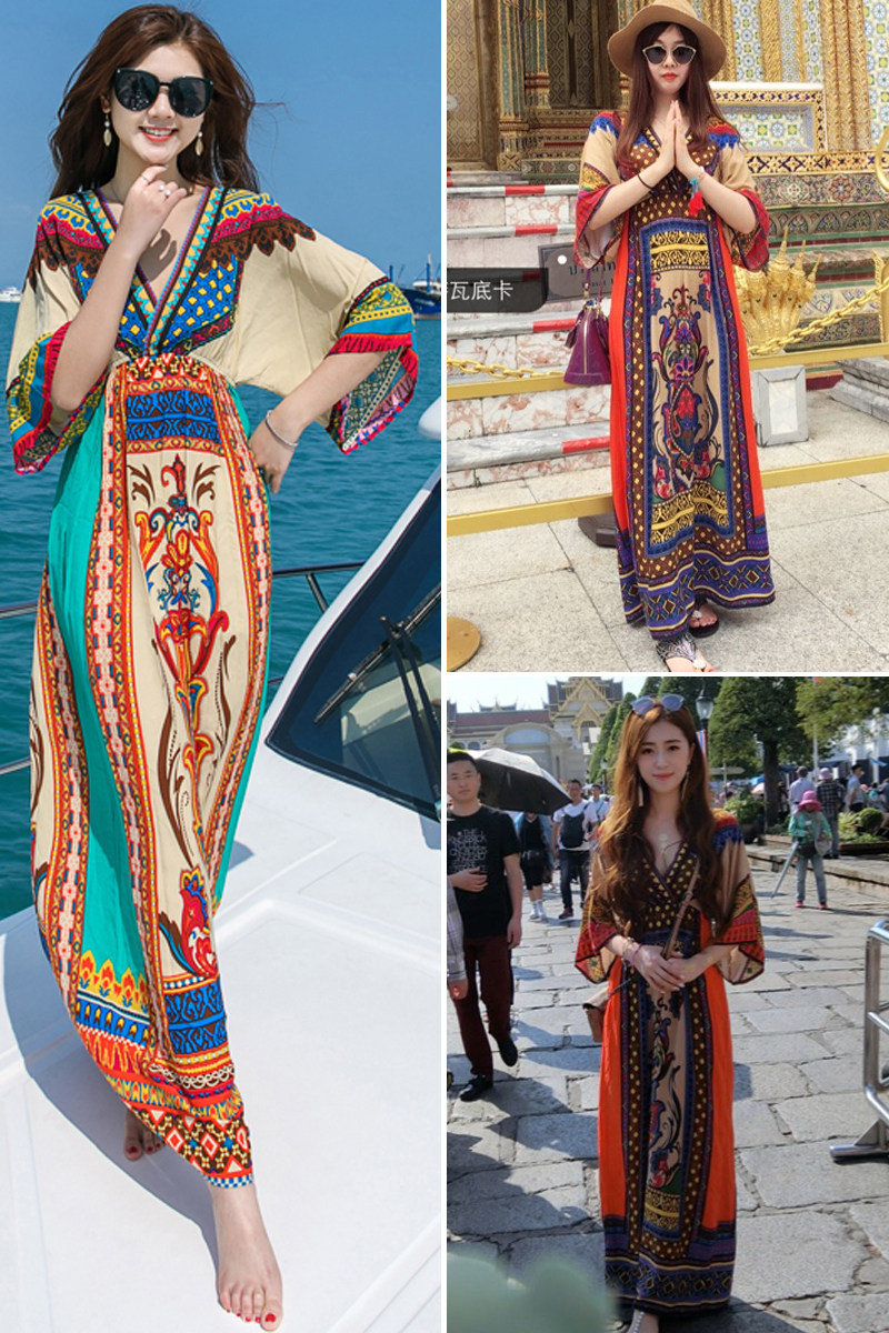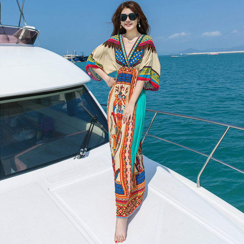 普吉岛沙滩裙民族风显瘦连衣裙旅游夏季泰国海边度假大码长裙女