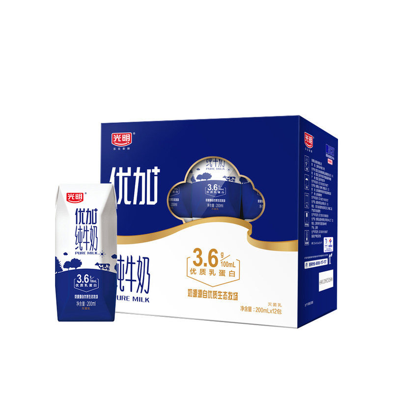 光明优加纯牛奶钻石装整箱200ml*12礼盒营养健康早餐奶孕妇学生