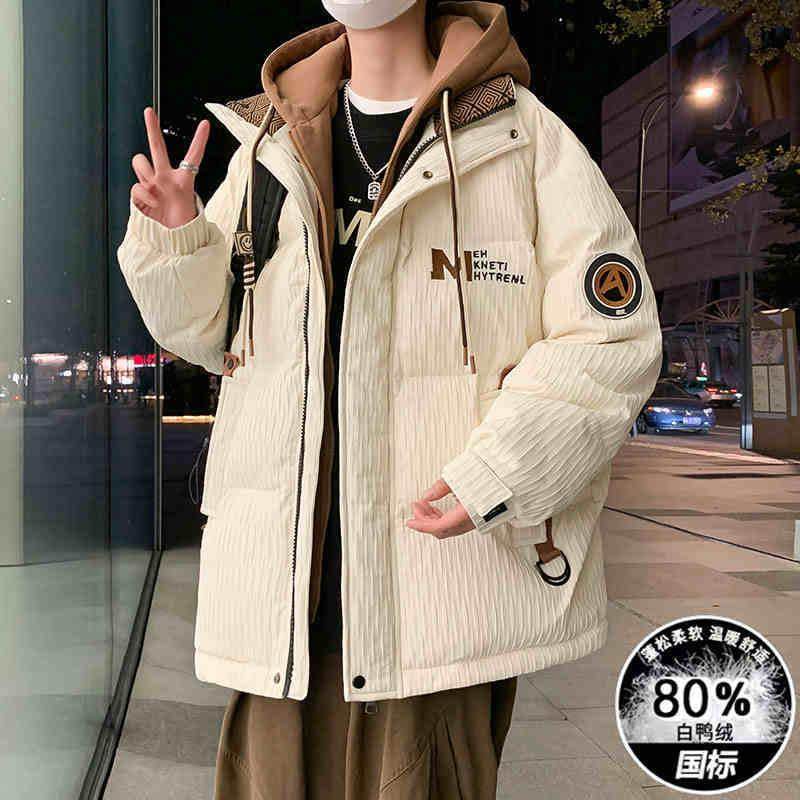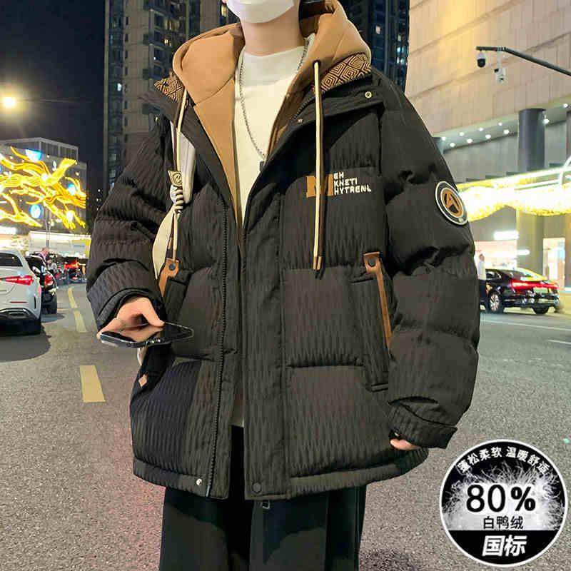 冬季新款青少年加厚外套初高中学生帅气羽绒服男孩假两件大童冬装