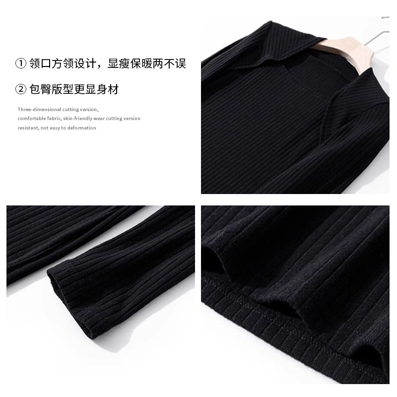 黑色针织连衣裙女内搭冬季加绒厚修身紧身小个子包臀裙子短款新款